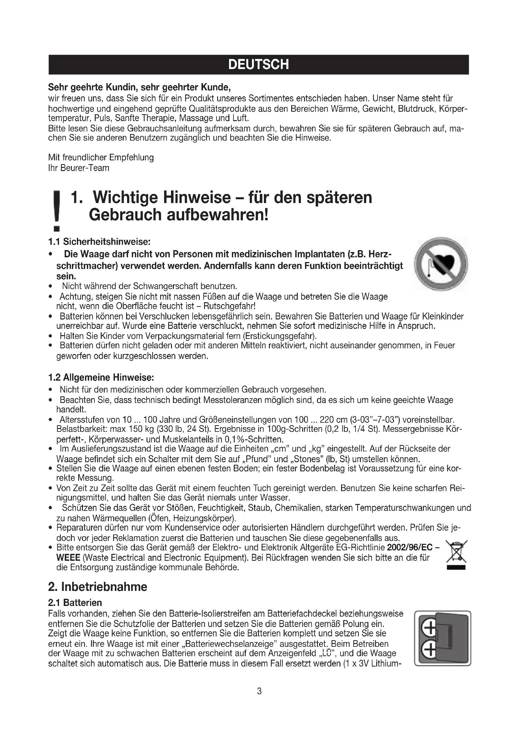 BG 17 - Waagen BEURER - Kostenlose Bedienungsanleitung