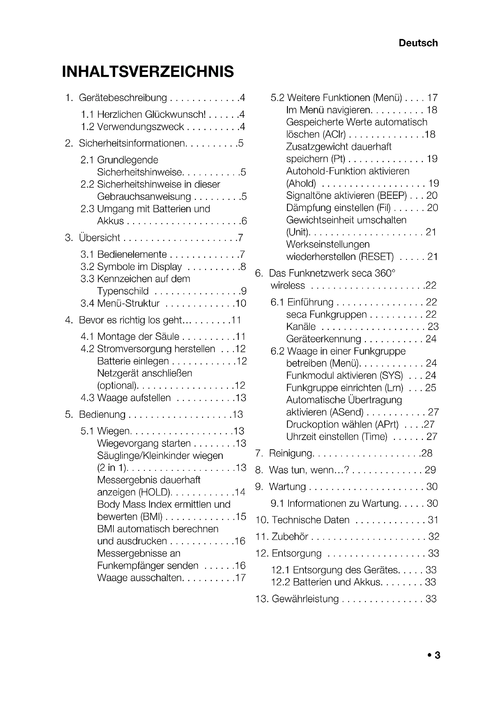 12.1 Entsorgung des Gerätes. 33