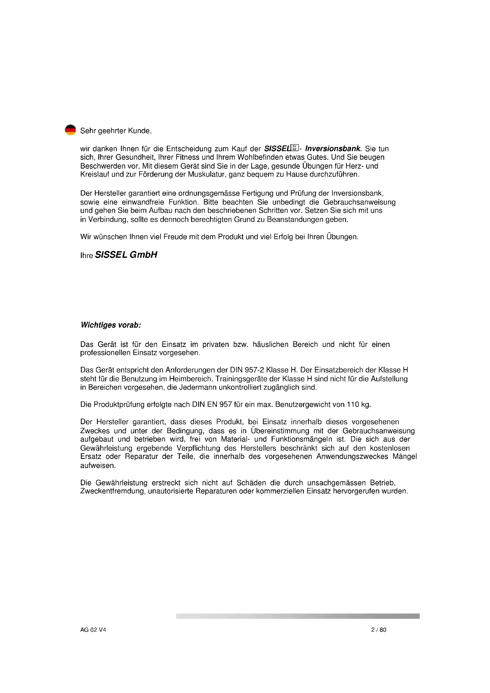 wir danken Ihnen für die Entscheidung zum Kauf der SISSEL - Inversionsbank. Sie tun sich, Ihrer Gesundheit, Ihrer Fitness und Ihrem Wohlbefinden etwas Gutes. Und Sie beugen Beschwerden vor. Mit diesem Gerät sind Sie in der Lage, gesunde Übungen für Herz- und Kreislauf und zur Förderung der Muskulatur, ganz bequem zu Hause durchzuführen.