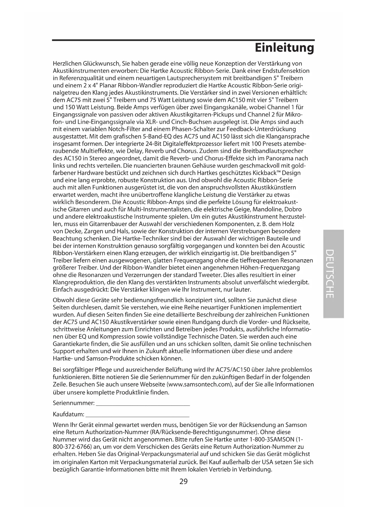 AC75 - Gitarrenverstärker Hartke - Kostenlose Bedienungsanleitung