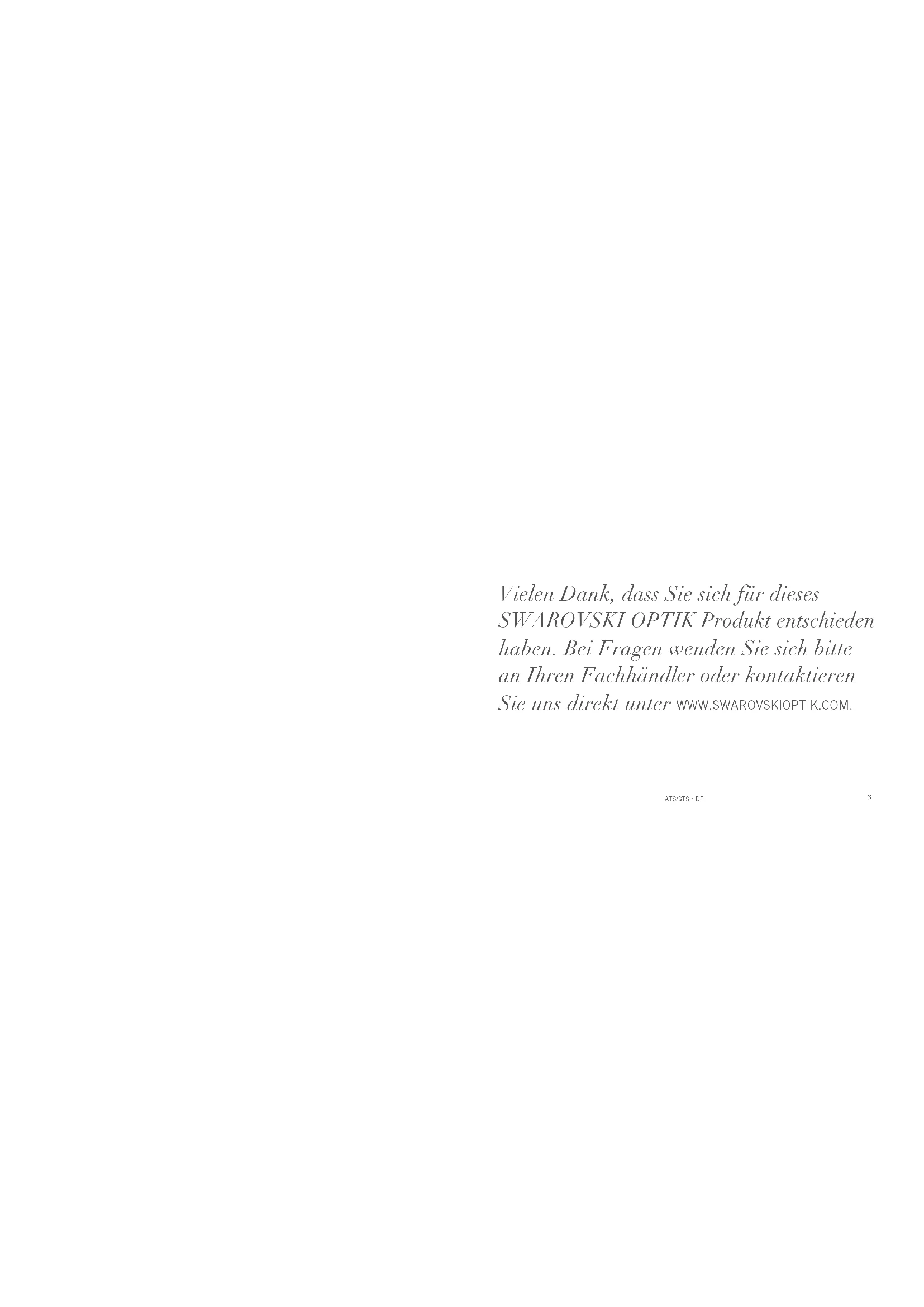 Vielen Dank, dass Sie sich für dieses SWAROVSKI OPTIK Produkt entschieden haben. Bei Fragen wenden Sie sich bitte an Ihren Fachhändler oder kontaktieren Sie uns direkt unter