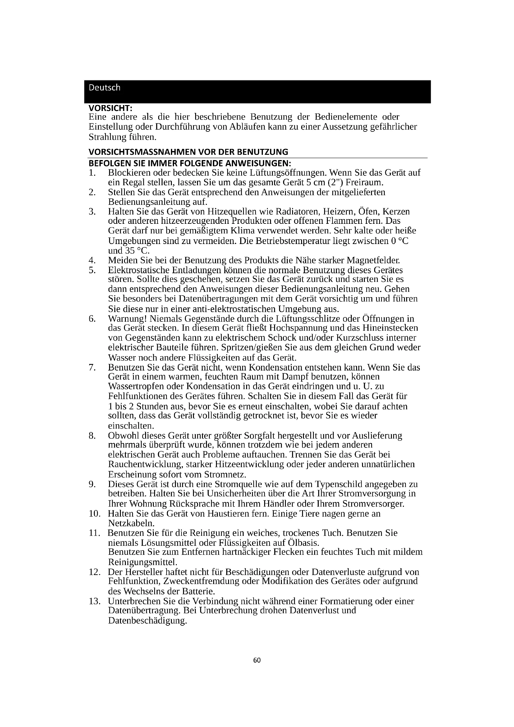 12. Der Hersteller haftet nicht für Beschädigungen oder Datenverluste aufgrund von