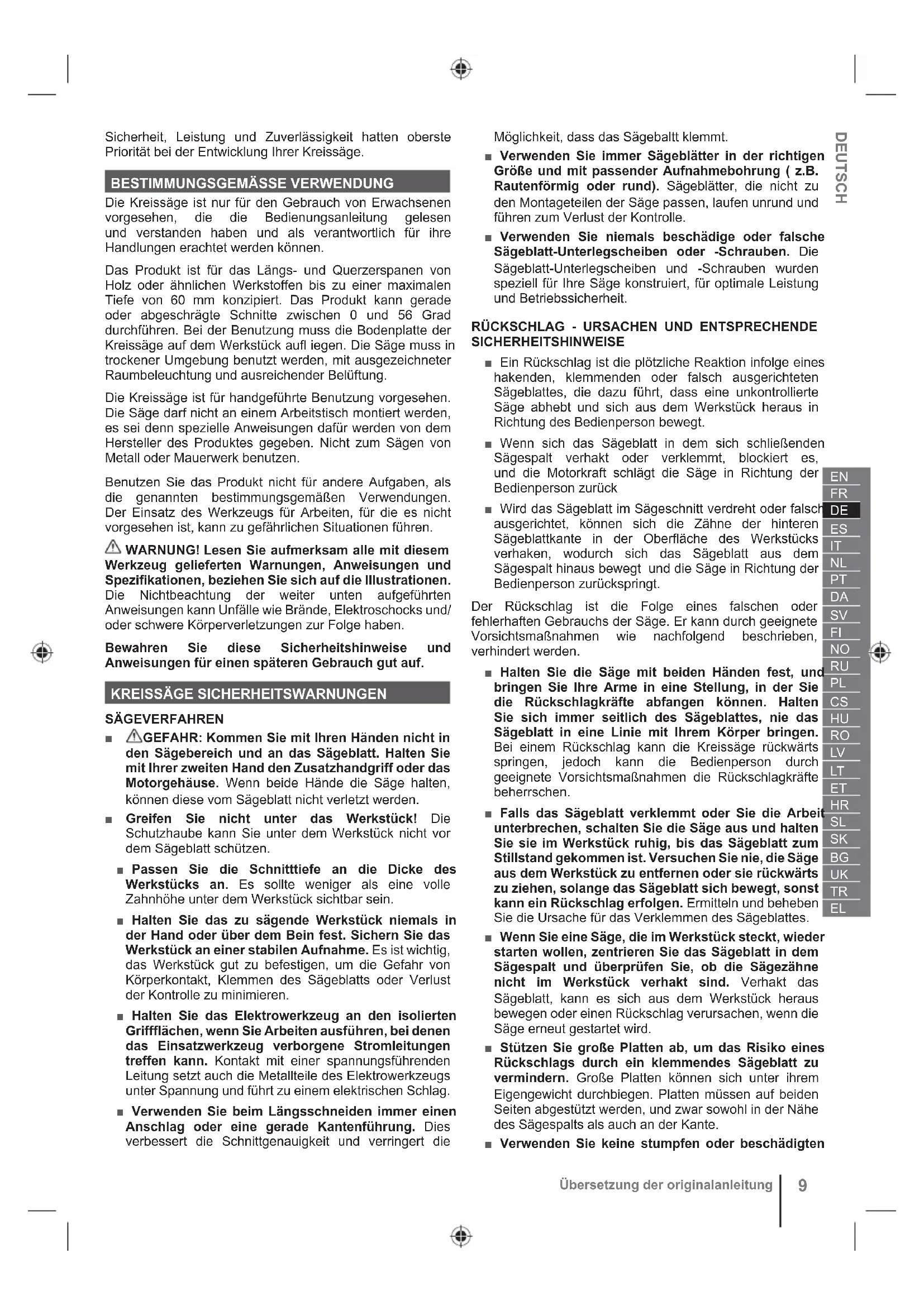 Traduction de la notice originaleSicherheit, Leistung und Zuverlässigkeit hatten oberste Priorität bei der Entwicklung Ihrer Kreissäge.