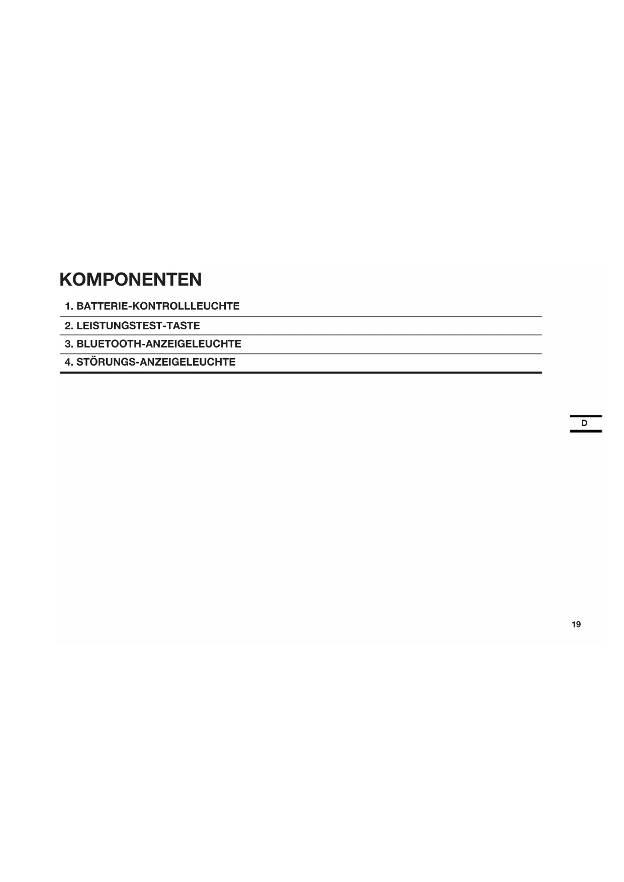 SYMBOLE Lesen Sie das Benutzerhandbuch. Lithium-Ionen-Akku: Dieses Produkt wurde mit einem Symbol markiert, das sich auf die ‘gesonderte Sammlung’ aller Akkupacks und Akkus bezieht. Es wird anschließend recycelt oder demontiert, um die Beeinträchtigung der Umwelt zu verringern. Akkupacks können die Umwelt und menschliche Gesundheit beeinträchtigen, da diese schädliche Substanzen enthalten. Umweltgerechte Entsorgung. Elektroaltgeräte dürfen nicht zusammen mit dem Restmüll entsorgt werden, sondern müssen separat entsorgt werden. Die Entsorgung bei der kommunalen Sammelstelle durch Privatpersonen ist kostenlos. Der Besitzer von Altgeräten ist dafür verantwortlich, die Geräte zu diesen oder ähnlichen Sammelstellen zu bringen. Mit diesem kleinen persönlichen Aufwand tragen Sie zur Wiederverwertung wertvoller Rohstoffe und zur Behandlung von Schadstoffen bei. Nicht verbrennen Batterien können bei falscher Entsorgung in der Wasserkreislauf gelangen und das Ökosystem bedrohen. Entsorgen Sie alte Batterien nicht im unsortierten Haushaltsabfall.25