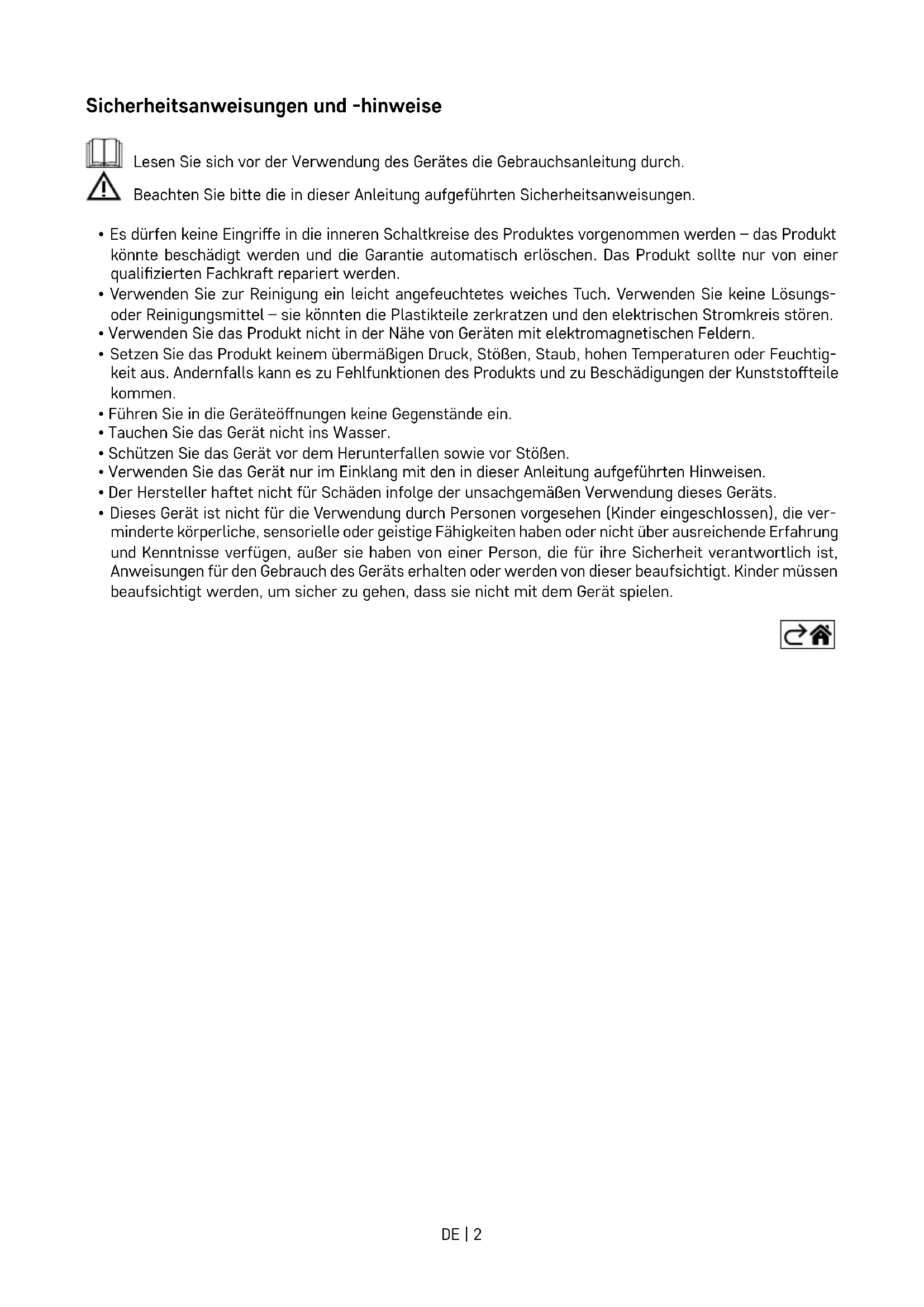 - Termometar nije povezan s Wi-Fi mrežom, provjerite funkcionalnost mreže.DE | 1 EGS0101 DE | Thermometer Inhalt Sicherheitsanweisungen und -hinweise ..........................................................................2 Technische Spezikation ...................................................................................................3 Beschreibung der Symbole und Schaltächen .................................................................4 Vorgehensweise bei der Inbetriebnahme .......................................................................... 5 Mobile App .........................................................................................................................6 Bedienung und Funktionen ................................................................................................9 Problemlösung FAQ .........................................................................................................12DE | 2 Sicherheitsanweisungen und -hinweise Lesen Sie sich vor der Verwendung des Gerätes die Gebrauchsanleitung durch. Beachten Sie bitte die in dieser Anleitung aufgeführten Sicherheitsanweisungen.