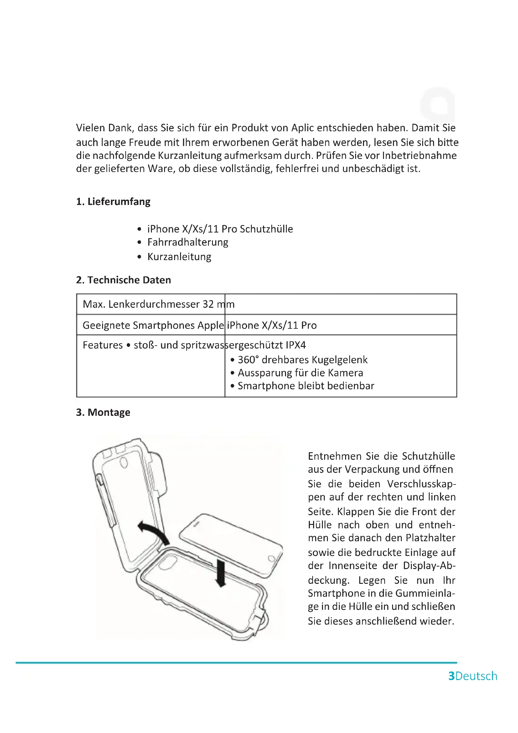 Vielen Dank, dass Sie sich für ein Produkt von Aplic entschieden haben. Damit Sie auch lange Freude mit ihrem erworbenen Gerät haben werden,lesen Sie sichitte die nachfolgende Kurzanleitung aufmerksam durch. Prufen Sie vor Inbetriebnahme der gefelften Ware, ob diese vollständig, fehlerfrei und unbeschädigt ist.