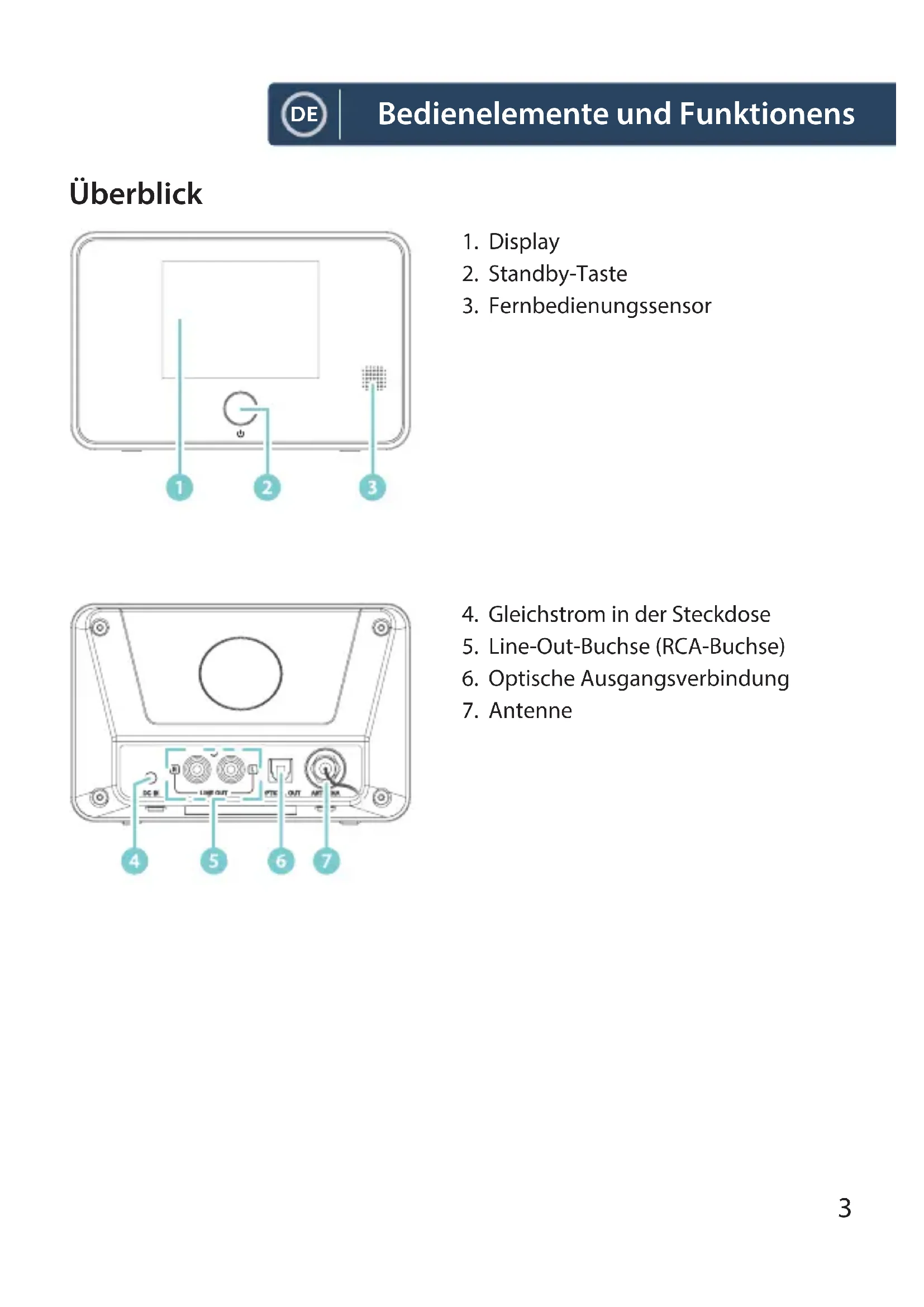 | Zusätzliche Funktionen | Wecker, Timer, AUX-Eingang |