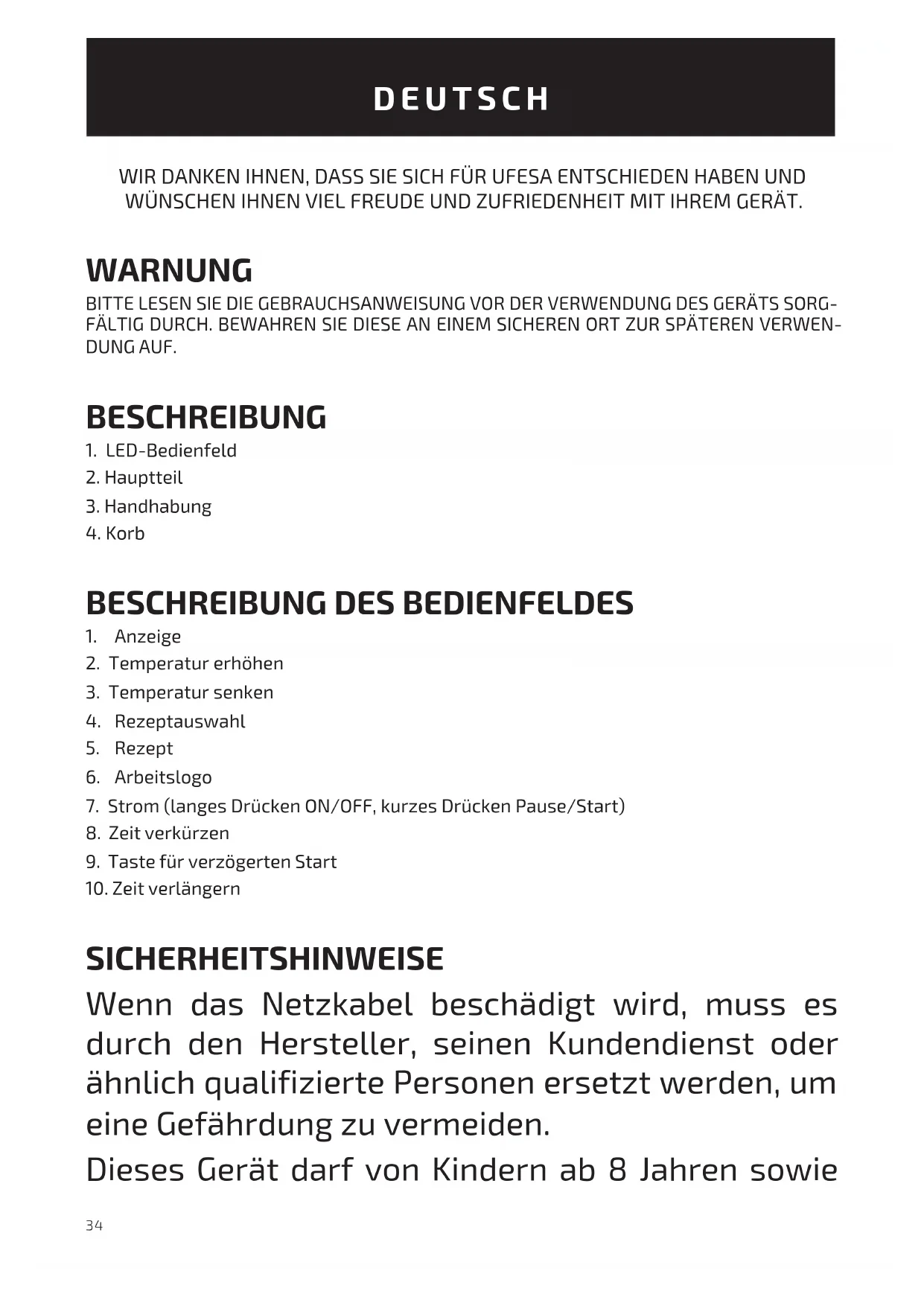 Apex - Fritteuse UFESA - Kostenlose Bedienungsanleitung