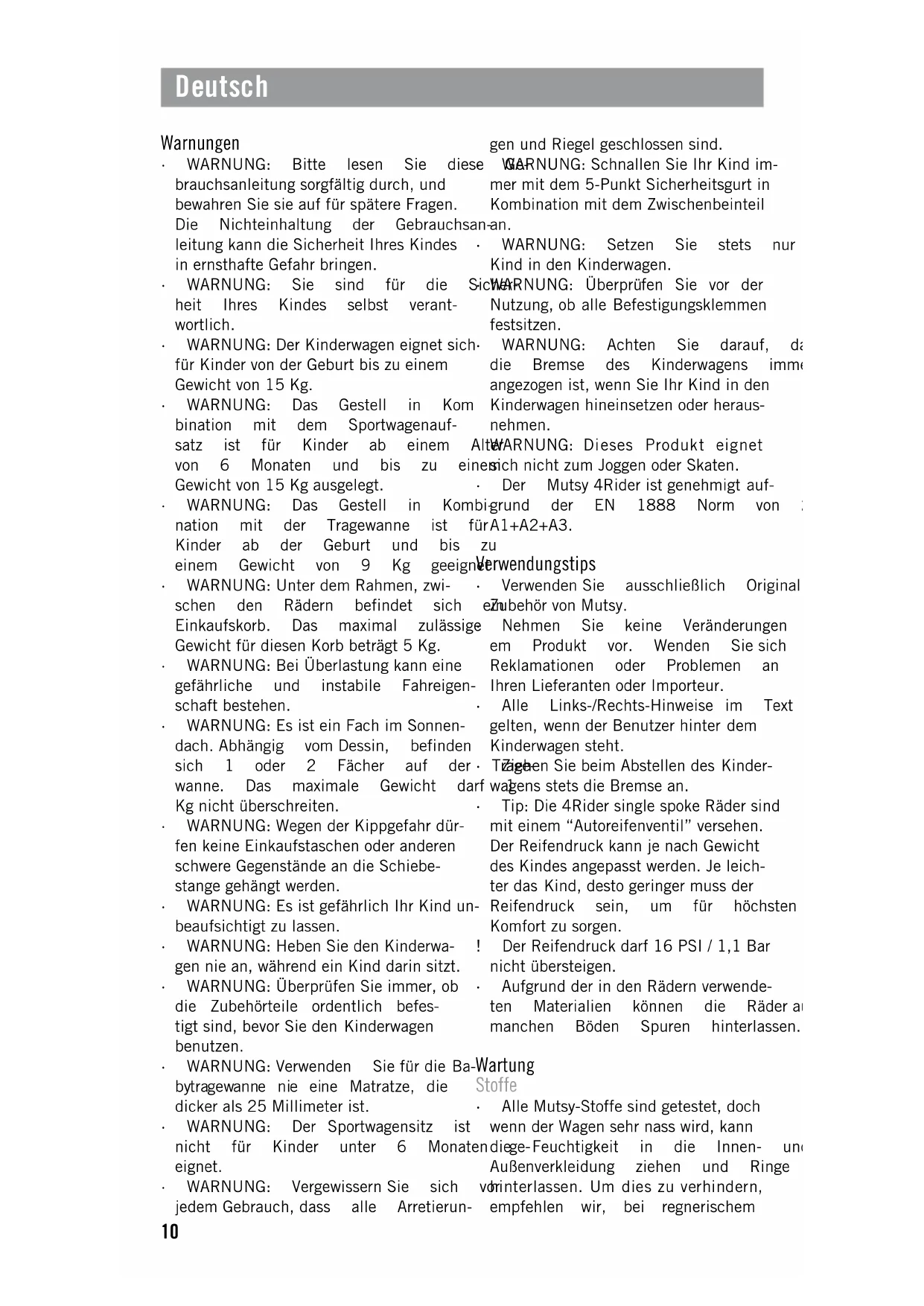 - Obgleich die Mutsy Stoffe mit gefädtwenkachsen. Schieben Sie die möglicher Sorgfalt ausgewählt und auf Räder nach offen bis sie eingeras Farbechtheit getestet worden sind, kann der Stoff verblassen. Mutsy übernimmt für ein eventuelles Verblasse pumpen der Reifen (c)