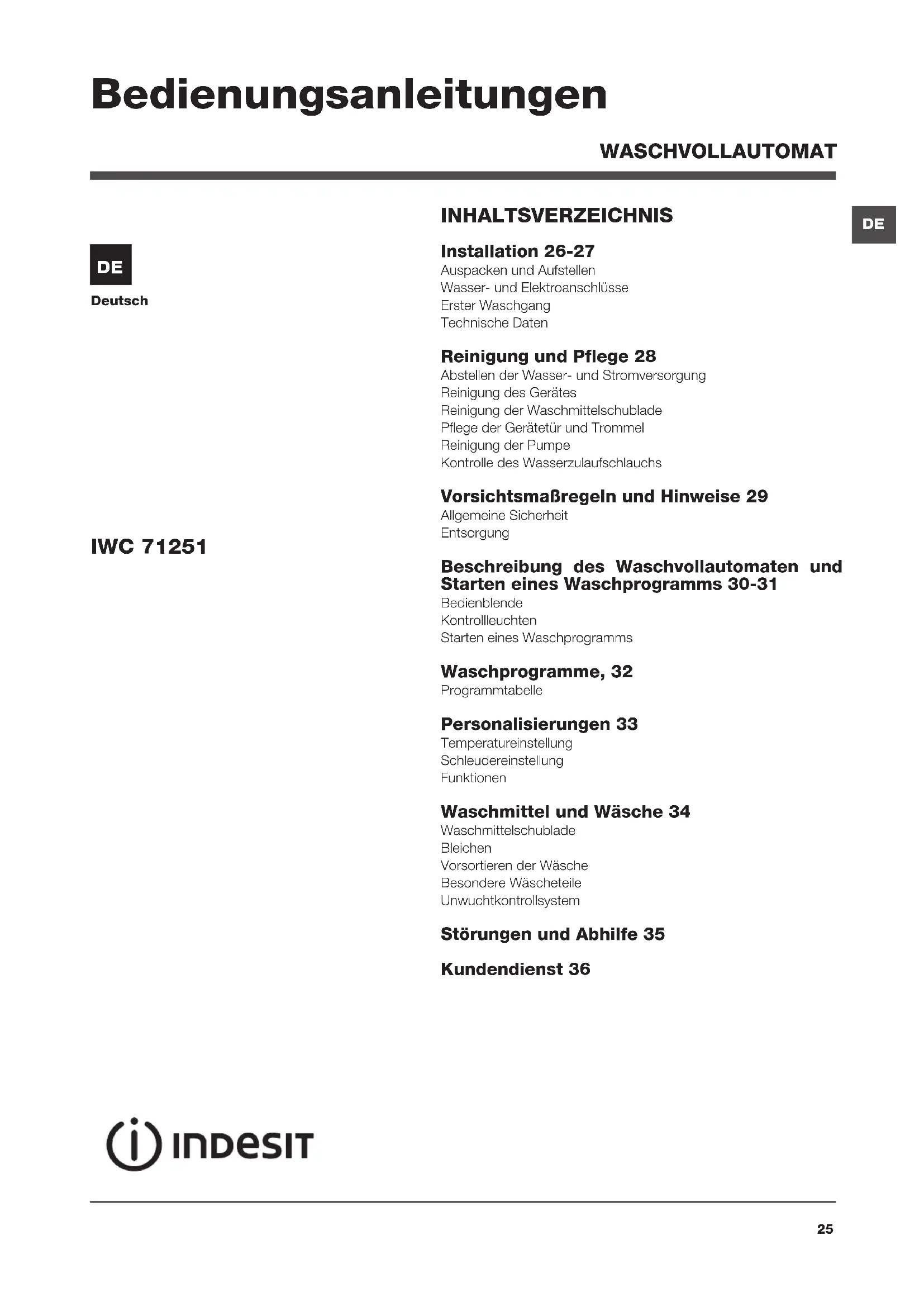 IWC 71251 Bedienungsanleitungen WASCHVOLLAUTOMAT26