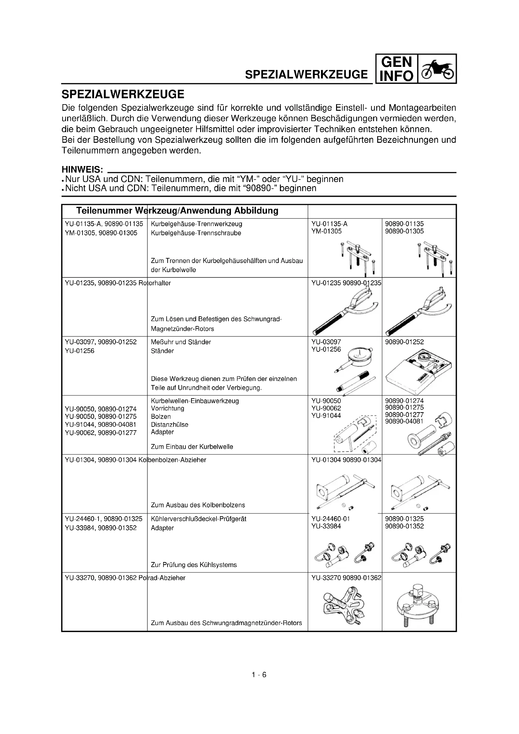 Herzlich willkommen im Kreis der Yamaha-Fahrer. Sie besitzen nun eine WR, die mit jahrzehntelanger Erfahrung sowie neuester Yamaha- Technologie entwickelt und gebaut wurde. Daraus resultiert ein hohes Maß an Qualität und die sprichwörtli- che Yamaha-Zuverlässigkeit. In dieser Anleitung erfahren Sie, wie Sie Ihr Motorrad am besten bedie- nen, inspizieren, warten und abstim- men. Sollten Sie darüber hinaus noch weitere Fragen haben, wenden Sie sich an den nächsten Yamaha- Händler Ihres Vertrauens. HINWEIS: Die Angaben dieser Anleitung befin- den sich zum Zeitpunkt der Druckle- gung auf dem neuesten Stand. Auf- grund der kontinuierlichen Bemühungen von Yamaha um tech- nischen Fortschritt und Qualitätsstei- gerung können einige Angaben je- doch für Ihr Modell nicht mehr zutreffen. Richten Sie Fragen zu die- ser Anleitung bitte an Ihren Yamaha- Händler. WARNUNG Vor der Inbetriebnahme sollte man sich mit den Eigenschaften und der Bedienung seines Fahrzeugs gut vertraut machen. Nur vor- schriftsmäßige Wartung, regelmä- ßige Schmierung und korrekte Einstellung können optimale Lei- stung und Sicherheit gewährlei- sten. Damit Sie alle Vorzüge die- ses Motorrades nutzen können, lesen Sie bitte diese Anleitung vor der Inbetriebnahme sorgfältig durch. Der Yamaha-Händler gibt bei Fragen gerne Auskunft. INTRODUCTION Félicitations pour votre achat d’une Yamaha séries WR. Ce modèle est l’aboutissement de la vaste expérience de Yamaha dans la production de machi- nes de course. Il représente l’échelon le plus élevé de la dextérité manuelle et de la fiabilité qui ont fait de Yamaha un lea- der. Ce manuel explique le fonctionnement, l’inspection, l’entretien de base et la mise au point de votre machine. Si vous avez des questions à poser à propos de ce manuel ou de votre machine, prière de prendre contact avec votre concession- naire Yamaha. N.B.: Comme des améliorations sont faites sur ce modèle, quelques données contenues dans ce manuel peuvent être périmées. Si vous avez des questions à poser, prière de consulter votre concessionnaire Yamaha. AVERTISSEMENT