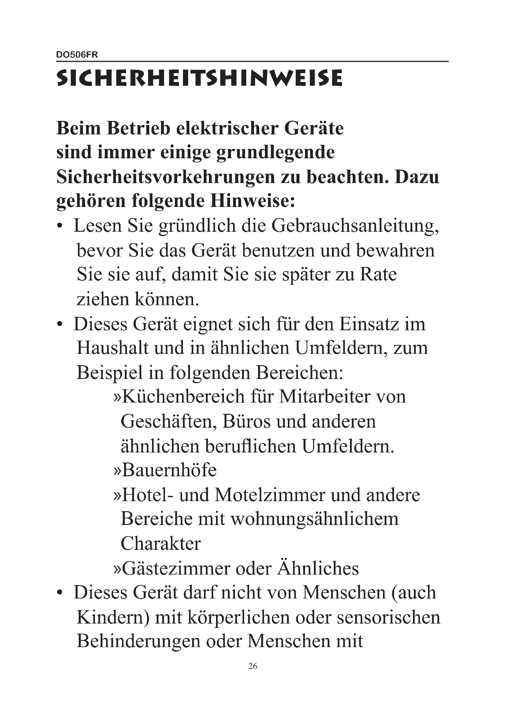 - Dieses Gerätarf nicht von Menschen (auch Kindern) mit körperlichen oder sensorischen Behinderungen oder Menschen mit