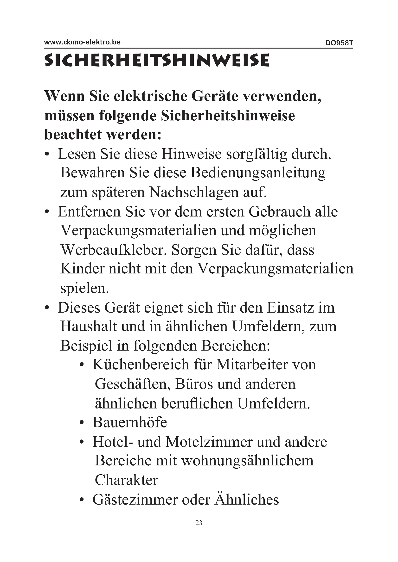 BEDIENUNGSANLEITUNG DO958T DOMO