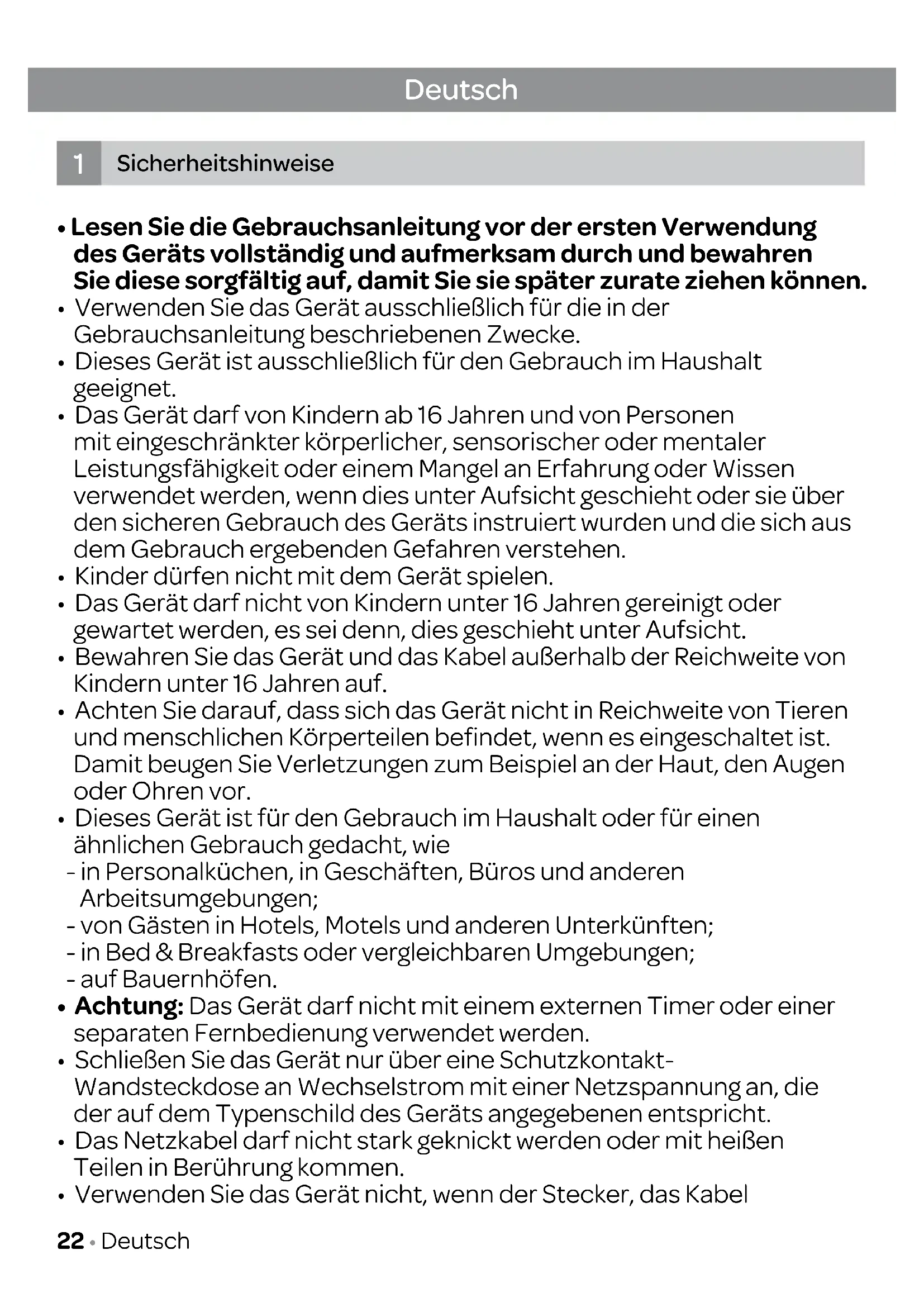 - Sicherheitshinweise Seite 22