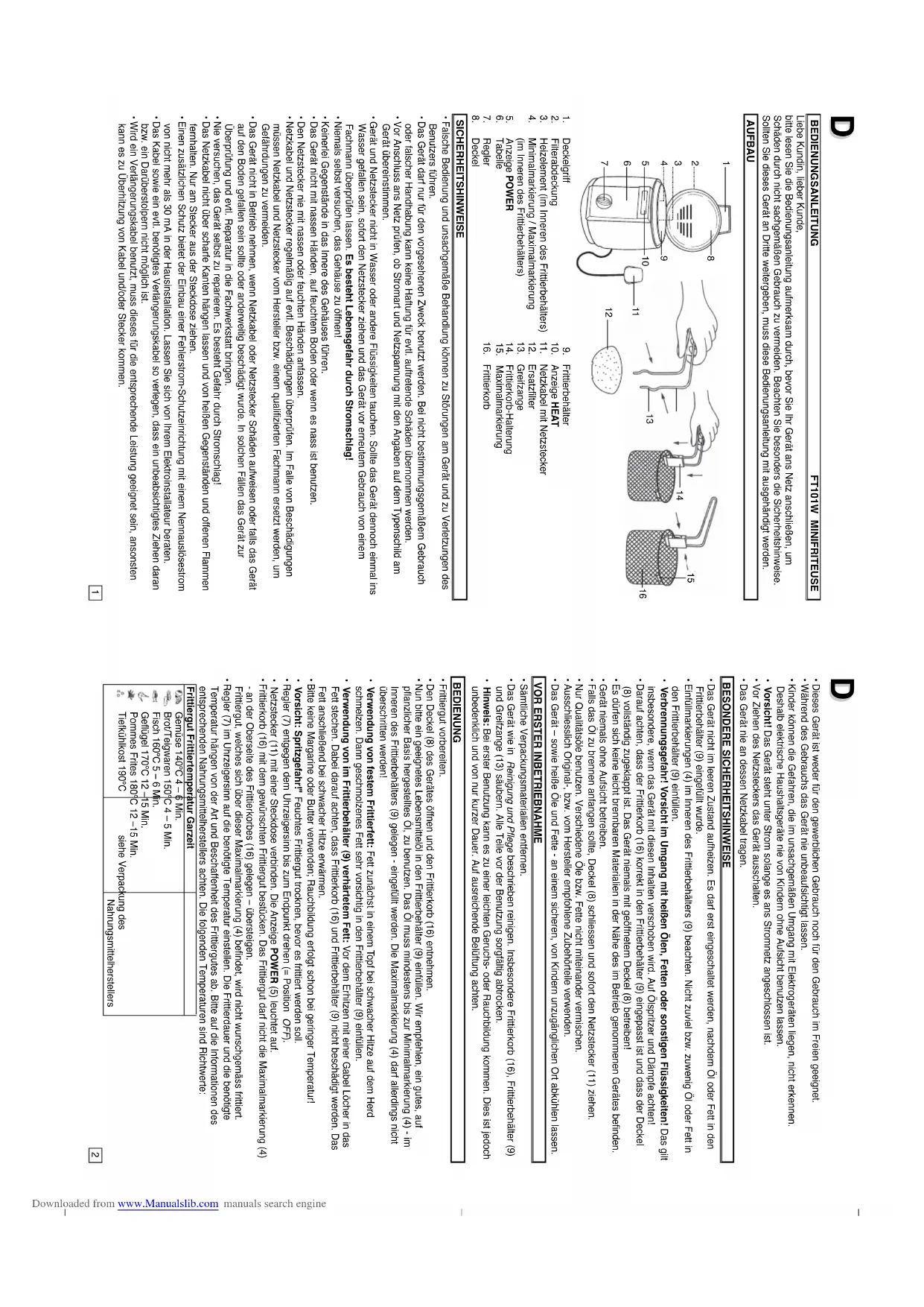 BEDIENUNGSANLEITUNG FT101W MINIFRITEUSE