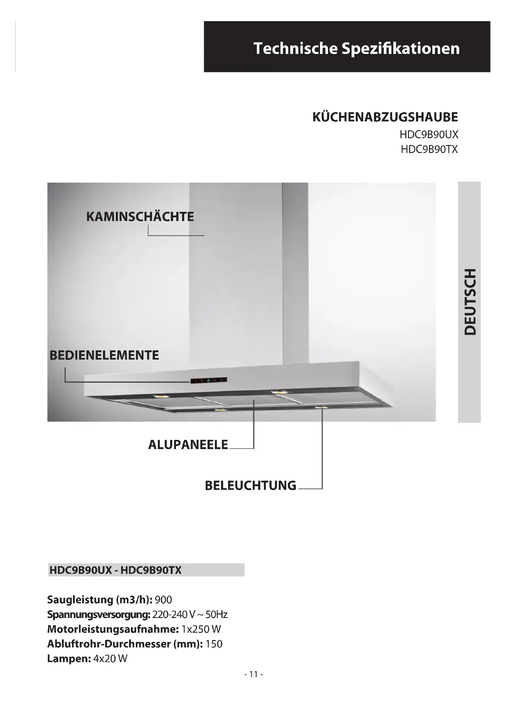 HDC9B90UX - Dunstabzugshaube SAMSUNG - Kostenlose Bedienungsanleitung