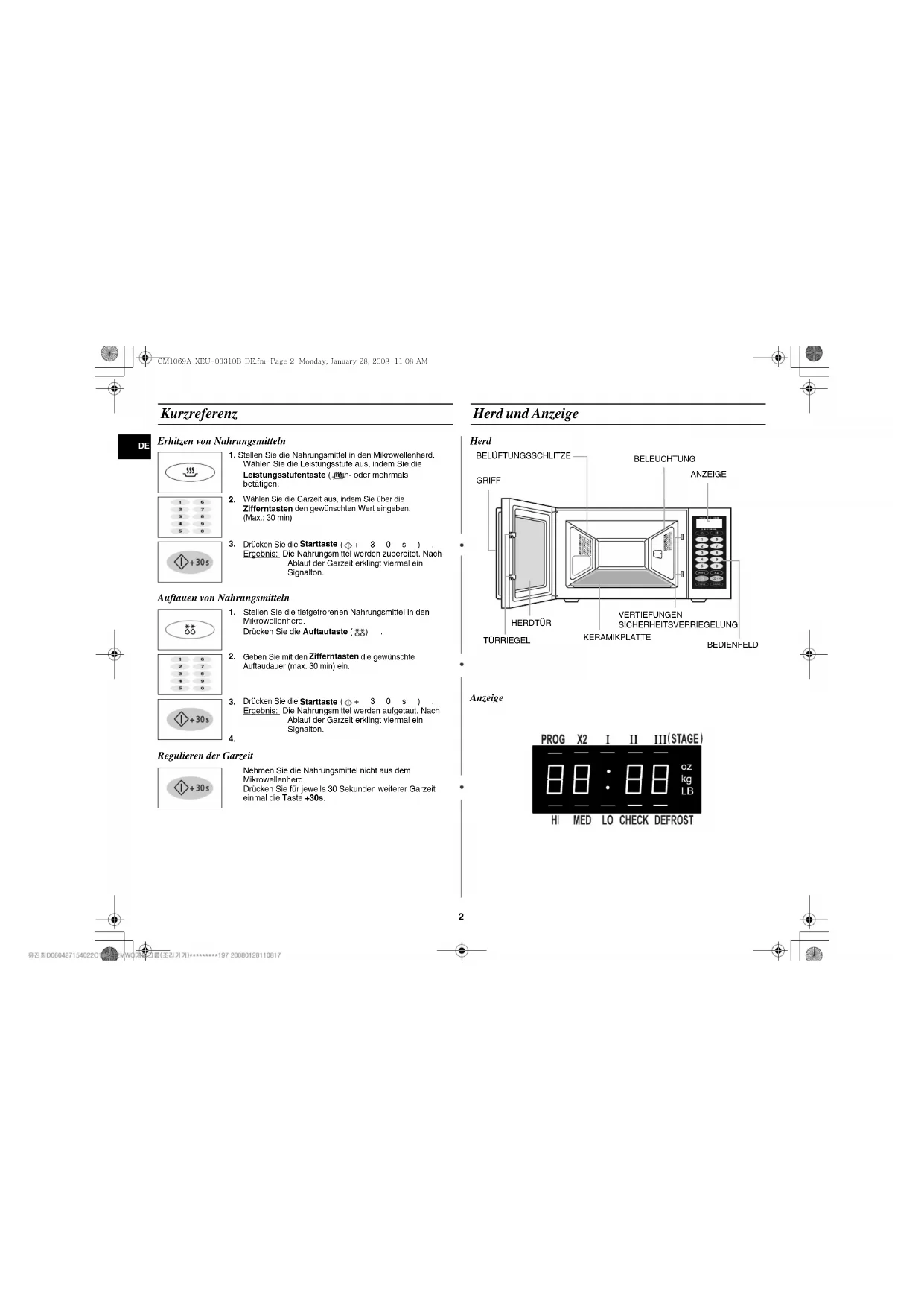 Kurzreferenz Erhitzen von Nahrungsmitteln Auftauen von Nahrungsmitteln Regulieren der Garzeit Herd und Anzeige Herd Anzeige