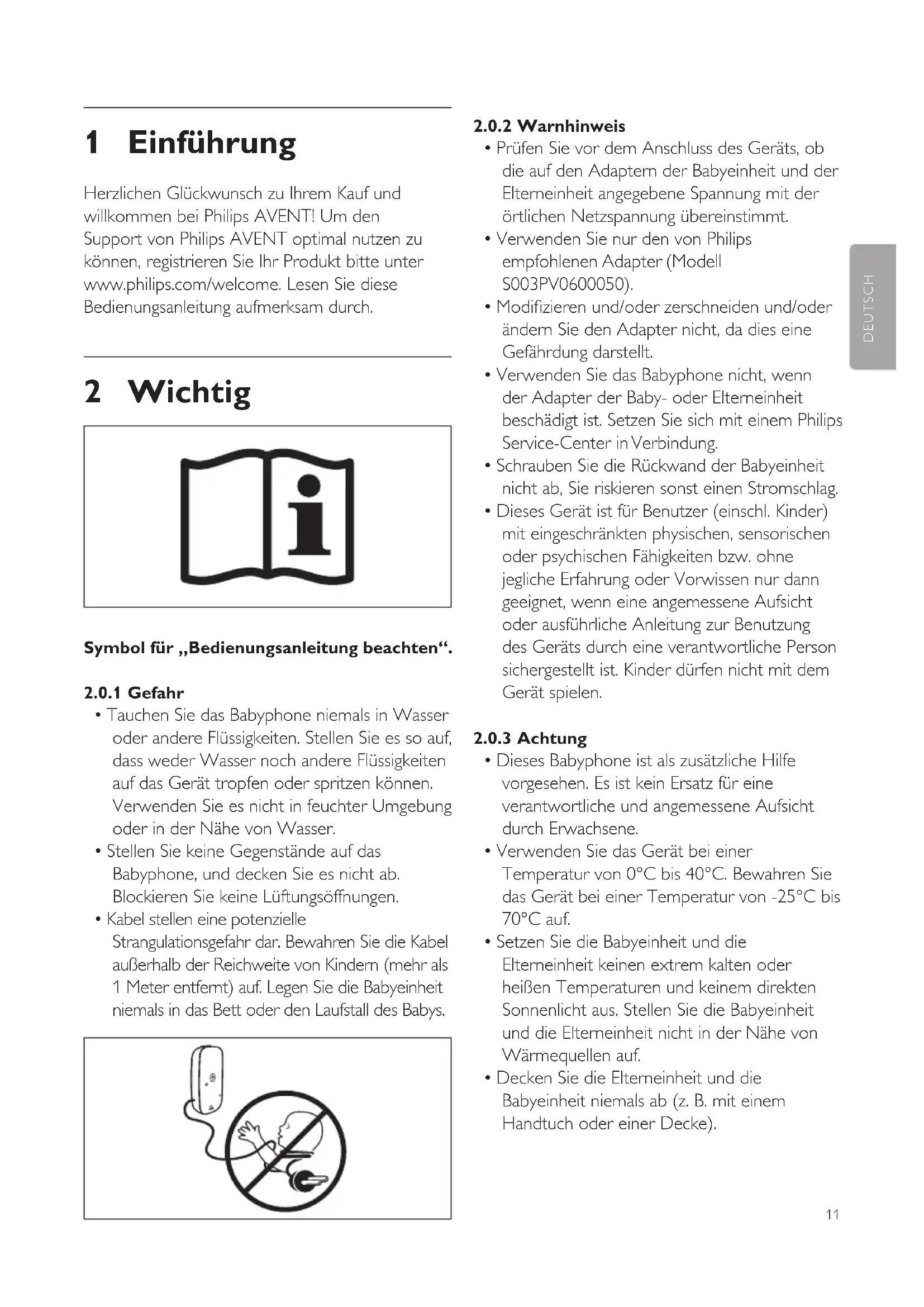 Herzlichen Glückwunsch zu Ihrem Kauf und willkommen bei Philips AVENT! Um den Support von Philips AVENT optimal nutzen zu können, registrieren Sie Ihr Produkt bitte unter www.philips.com/welcome. Lesen Sie diese Bedienungsanleitung aufmerksam durch.