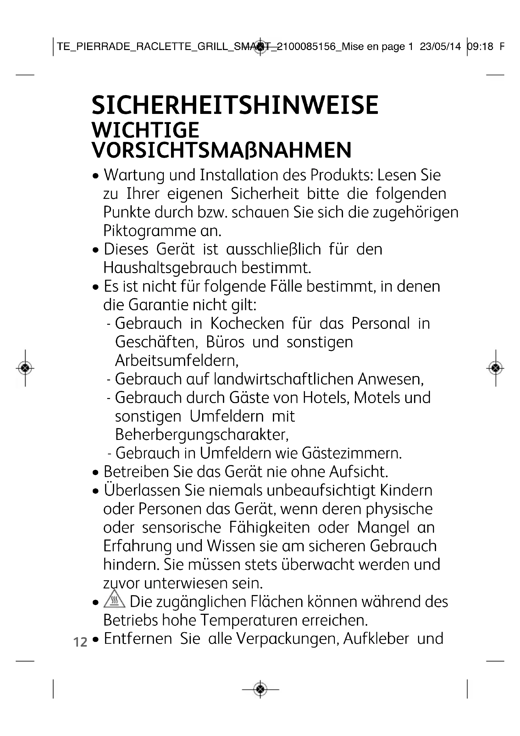 TE_PIERRADE_RACLETTE_GRILL_SMART_2100085156_Mise en page 1 23/05/14 09:18 Page14• Wir freuen uns, dass Sie sich für ein Gerät von TEFAL entschieden haben.