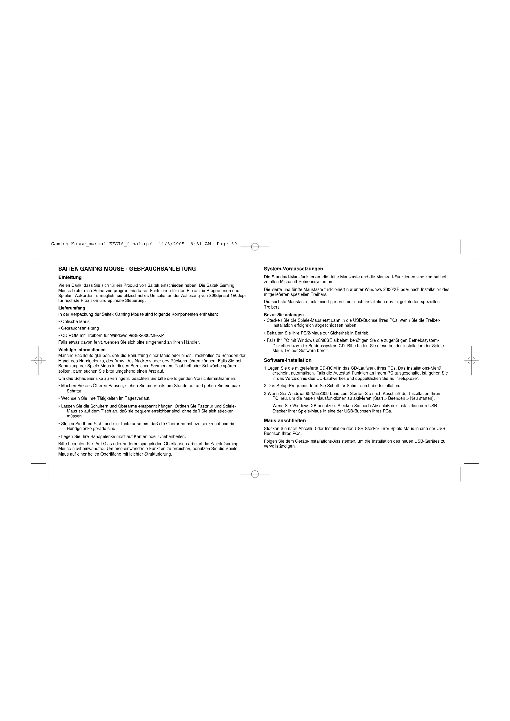 SAITEK GAMING MOUSE - GEBRAUCHSANLEITUNG