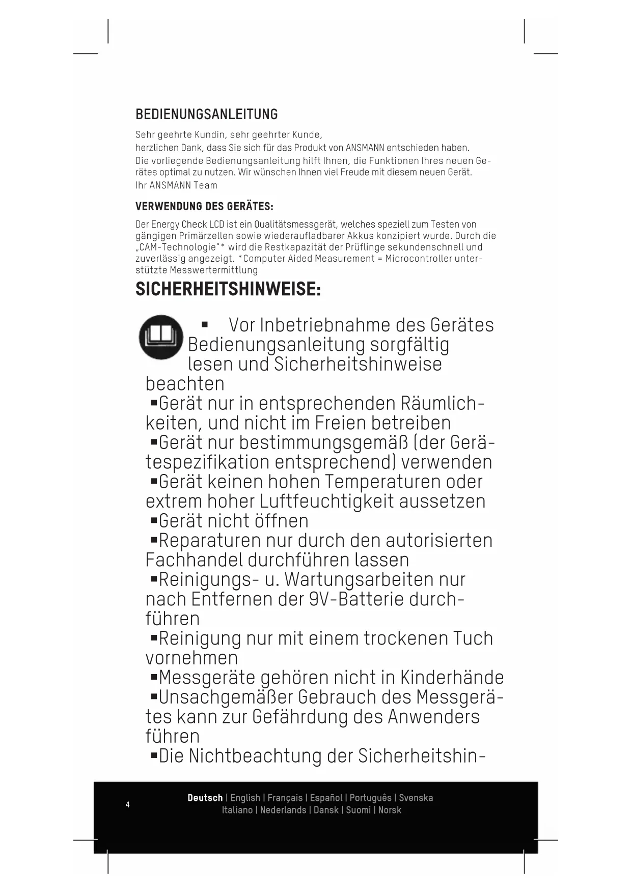 Energy Check LCD - Batterieladegerät ANSMANN - Kostenlose Bedienungsanleitung