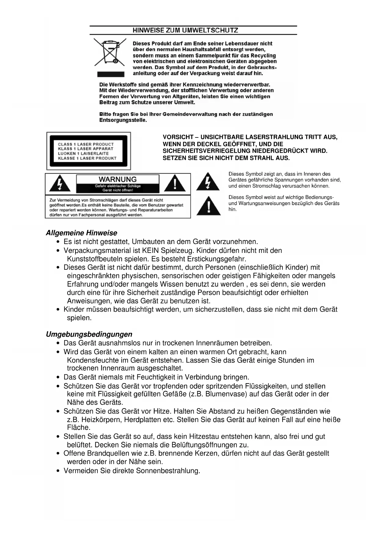 - Es ist nicht gestattet, Umbauten an dem Gerät vorzunehmen.