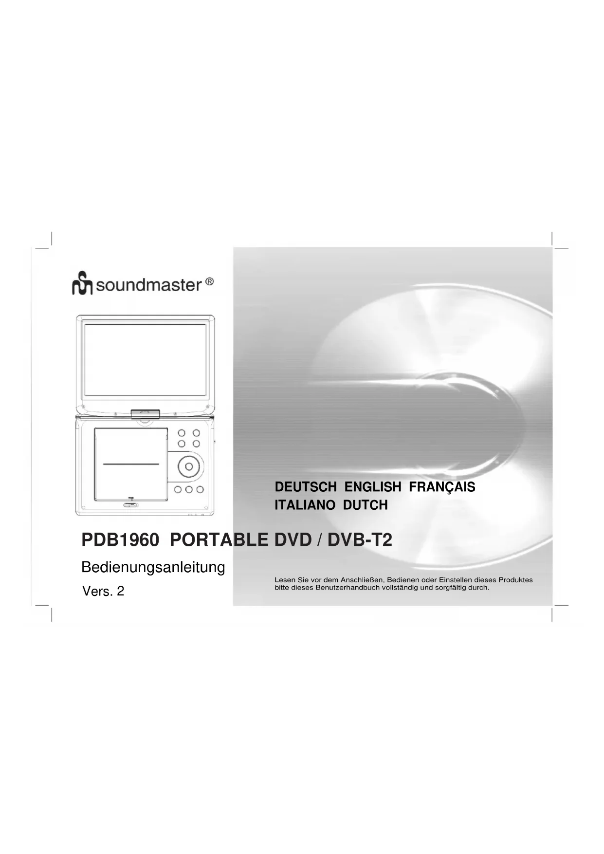 Laden Sie die Anleitung für Ihr Tragbarer DVD-Player kostenlos im PDF-Format! Finden Sie Ihr Handbuch PDB1960 - Soundmaster und nehmen Sie Ihr elektronisches Gerät wieder in die Hand. Auf dieser Seite sind alle Dokumente veröffentlicht, die für die Verwendung Ihres Geräts notwendig sind. PDB1960 von der Marke Soundmaster.