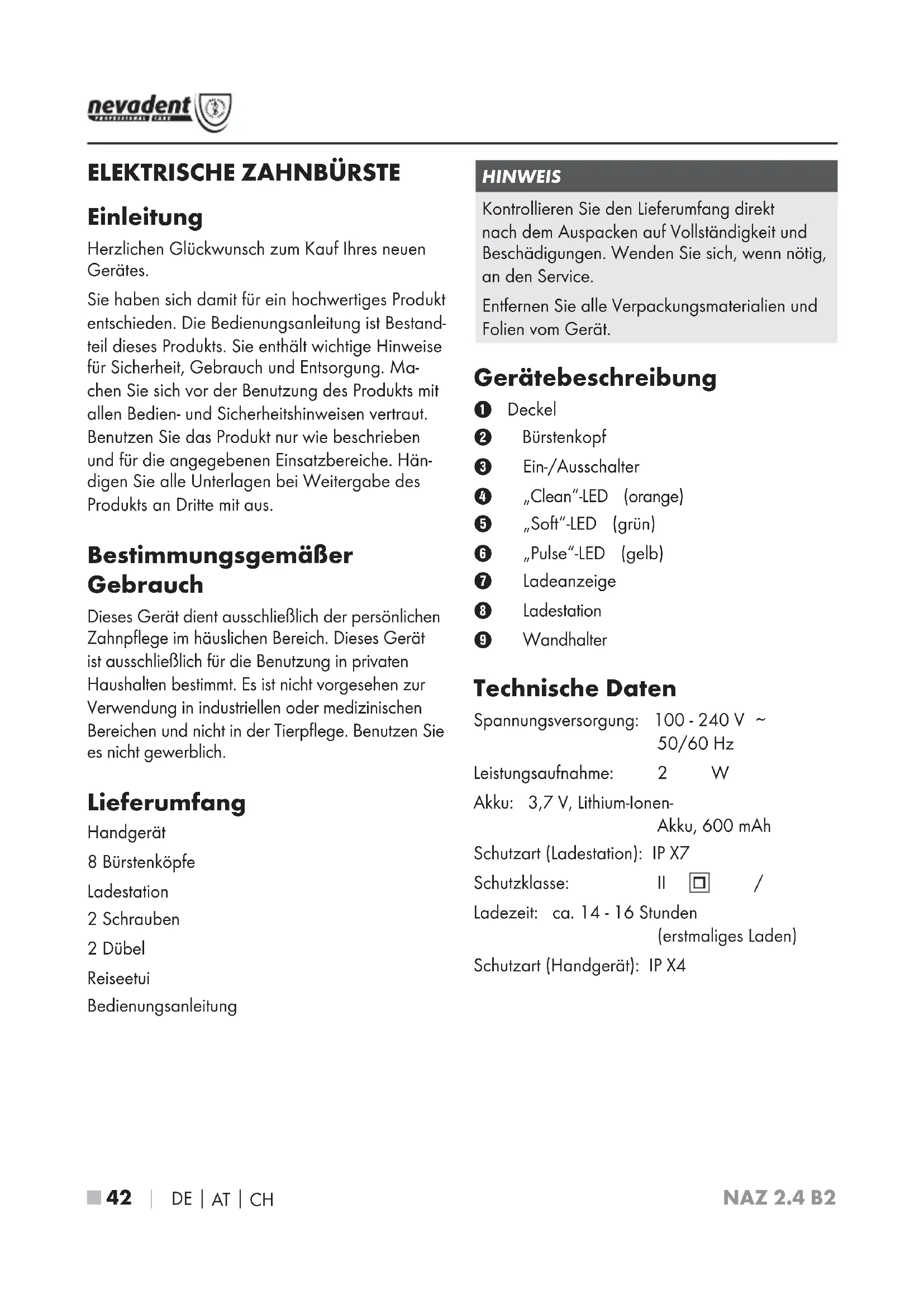 NAZ 2.4 B2 - Zahnbürste NEVADENT - Kostenlose Bedienungsanleitung