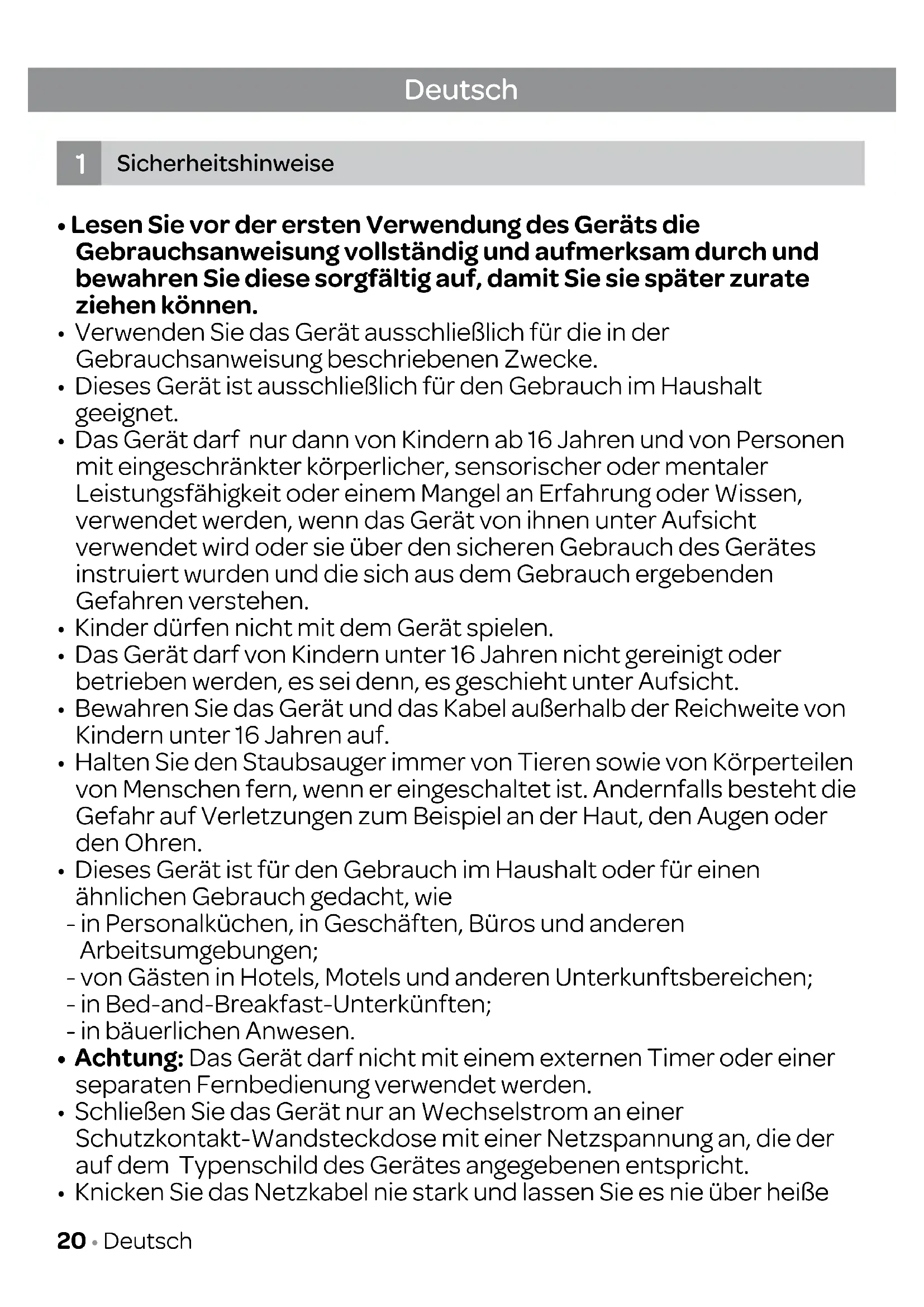 - Das Gerät darf von Kindern unter 16 Jahren nicht gereinigt oder betrieben werden, es sei denn, es geschieht unter Aufsicht.