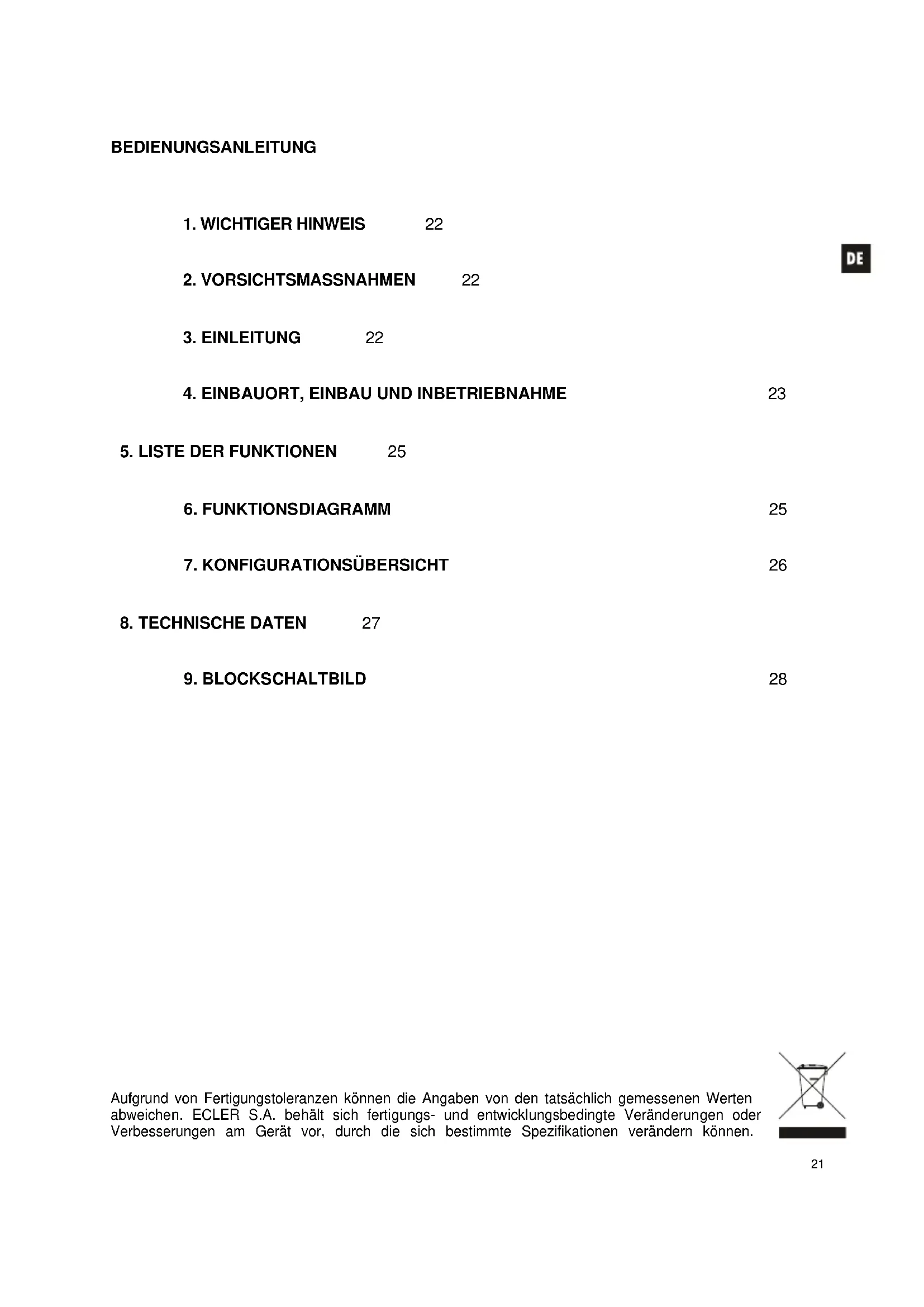 EINBAUORT, EINBAU UND INBETRIEBNAHME 23