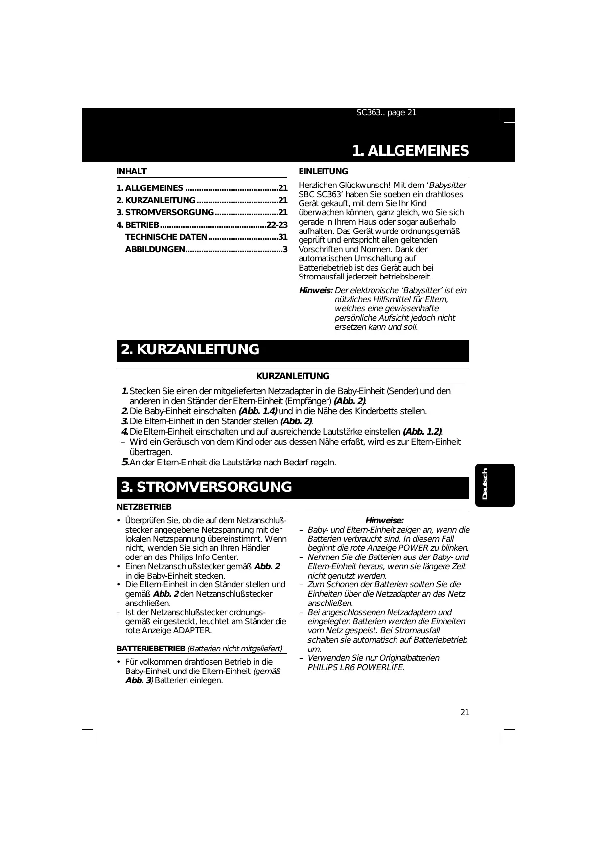 Finden Sie kostenlos die Bedienungsanleitung des Geräts SBCSC363 PHILIPS als PDF.