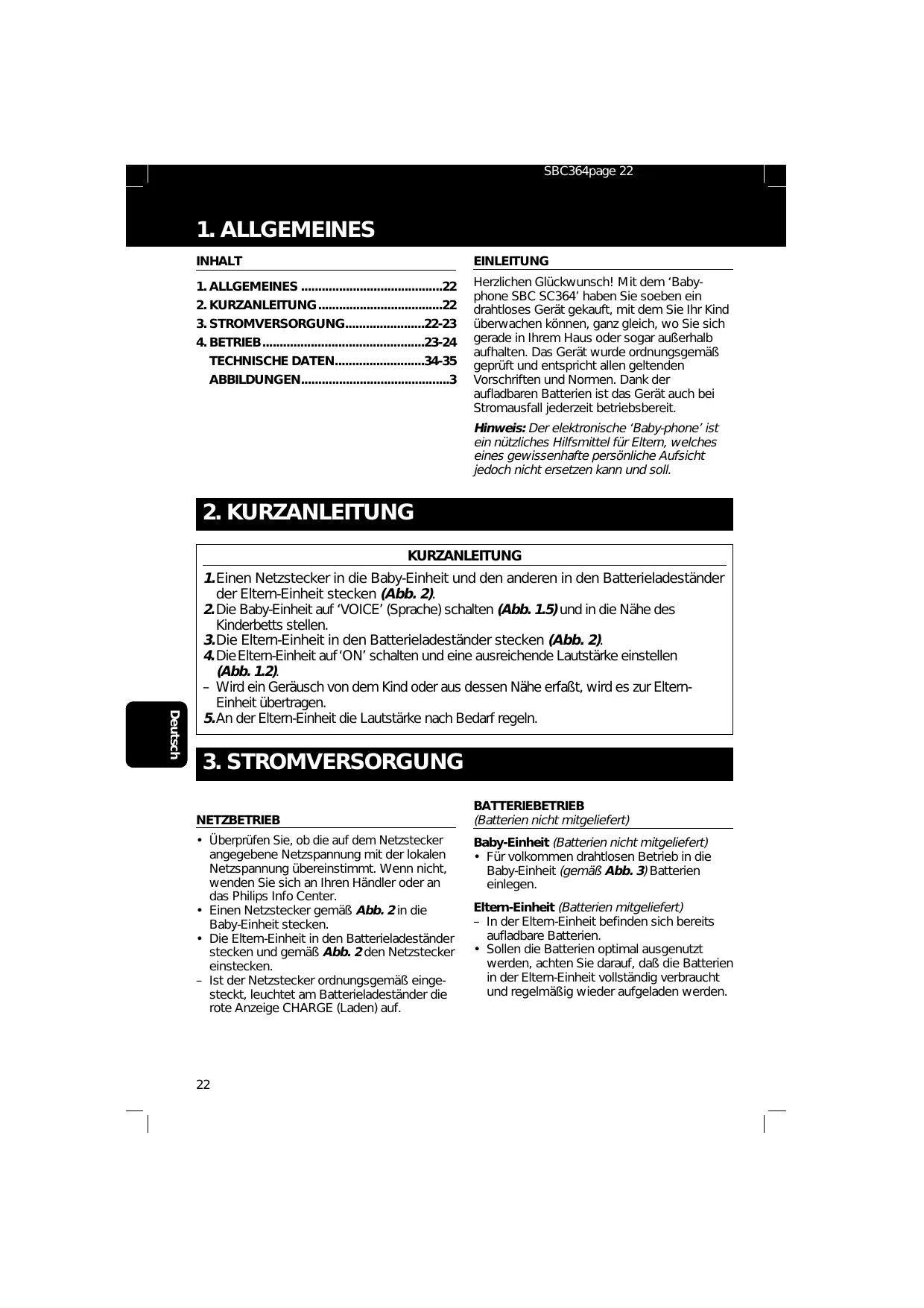 - Sollen die Batterien optimal ausgenutzt werden, achten Sie darauf, daß die Batterien in der Eltern-Einheit vollständig verbraucht und regelmäßig wieder aufgeladen werden. SBC364page 23
