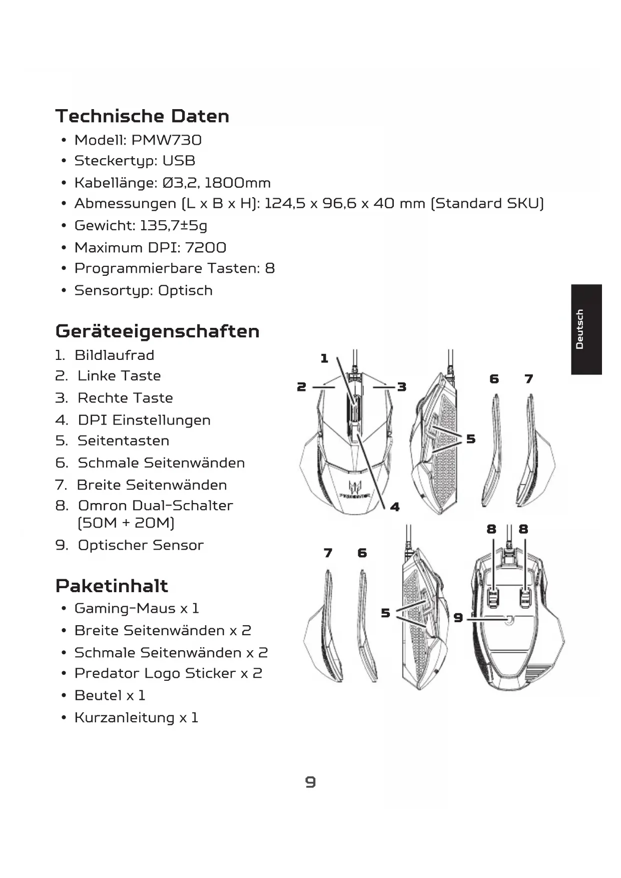 Predator Cestus 500 - Maus ACER - Kostenlose Bedienungsanleitung
