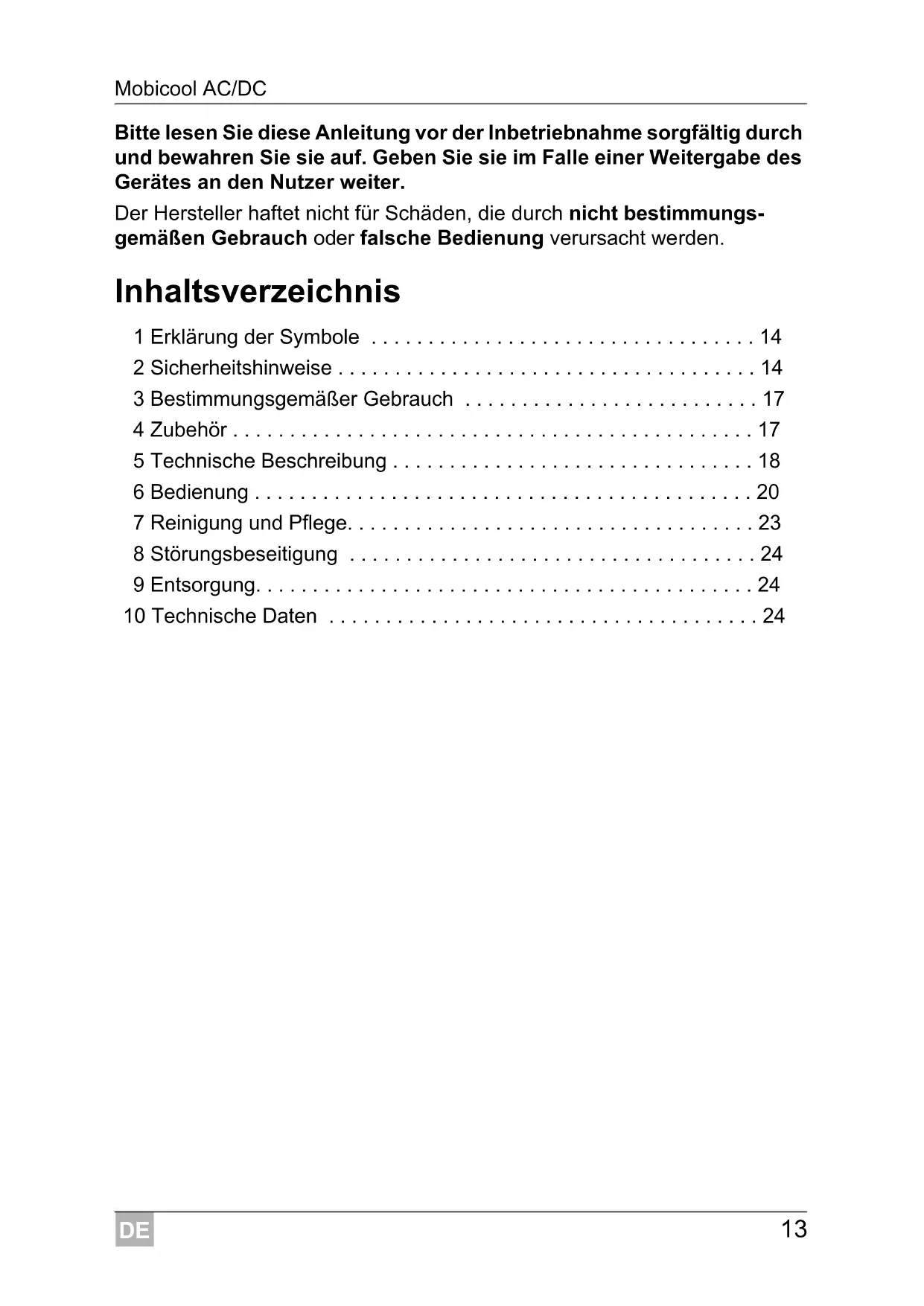 - 10 Technische Daten DE Erklärung der Symbole Mobicool AC/DC p. 24