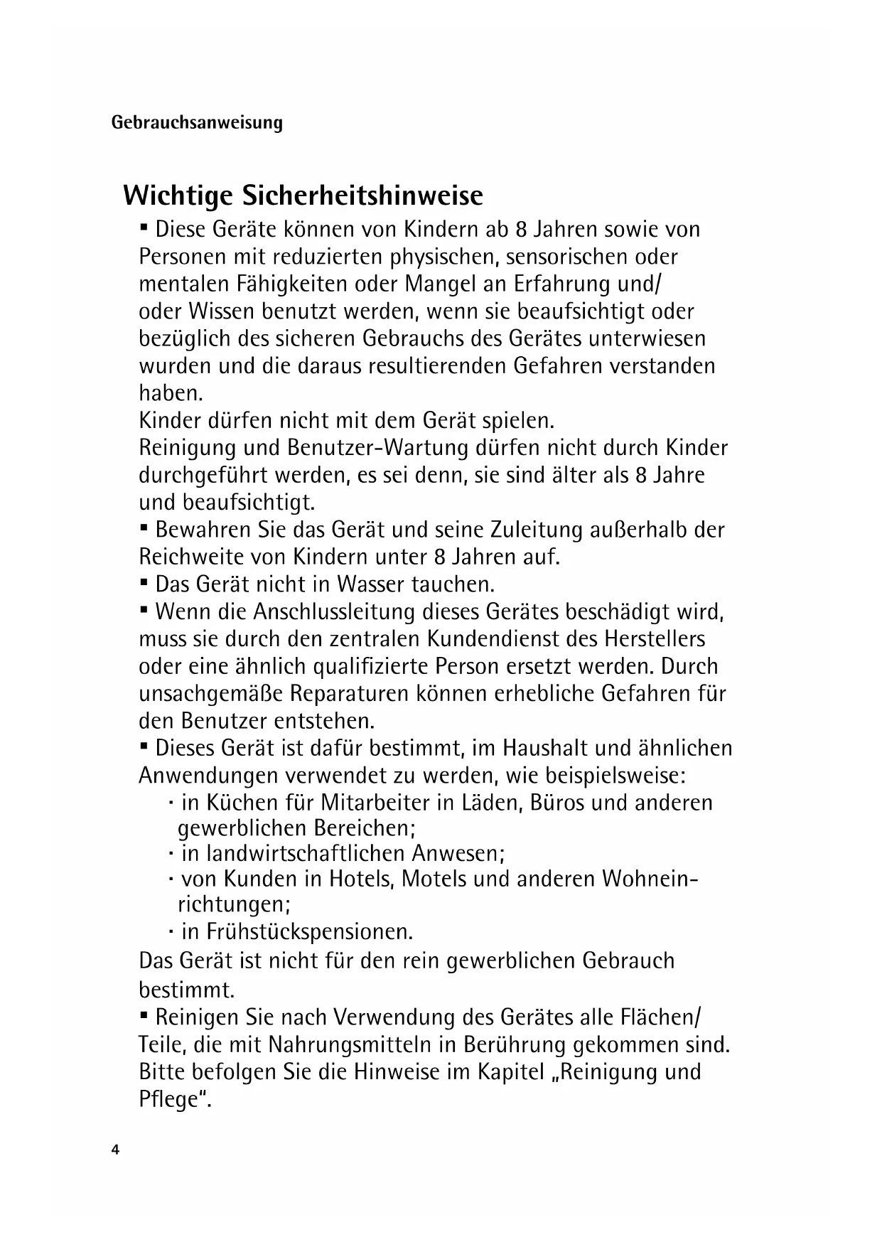 Reinigung und Benutzer-Wartung)durren nicht durch Kinder durchgefuhrt werden, es sei dess, sie sind alter als 8 Jahre und beaufsichtigt.