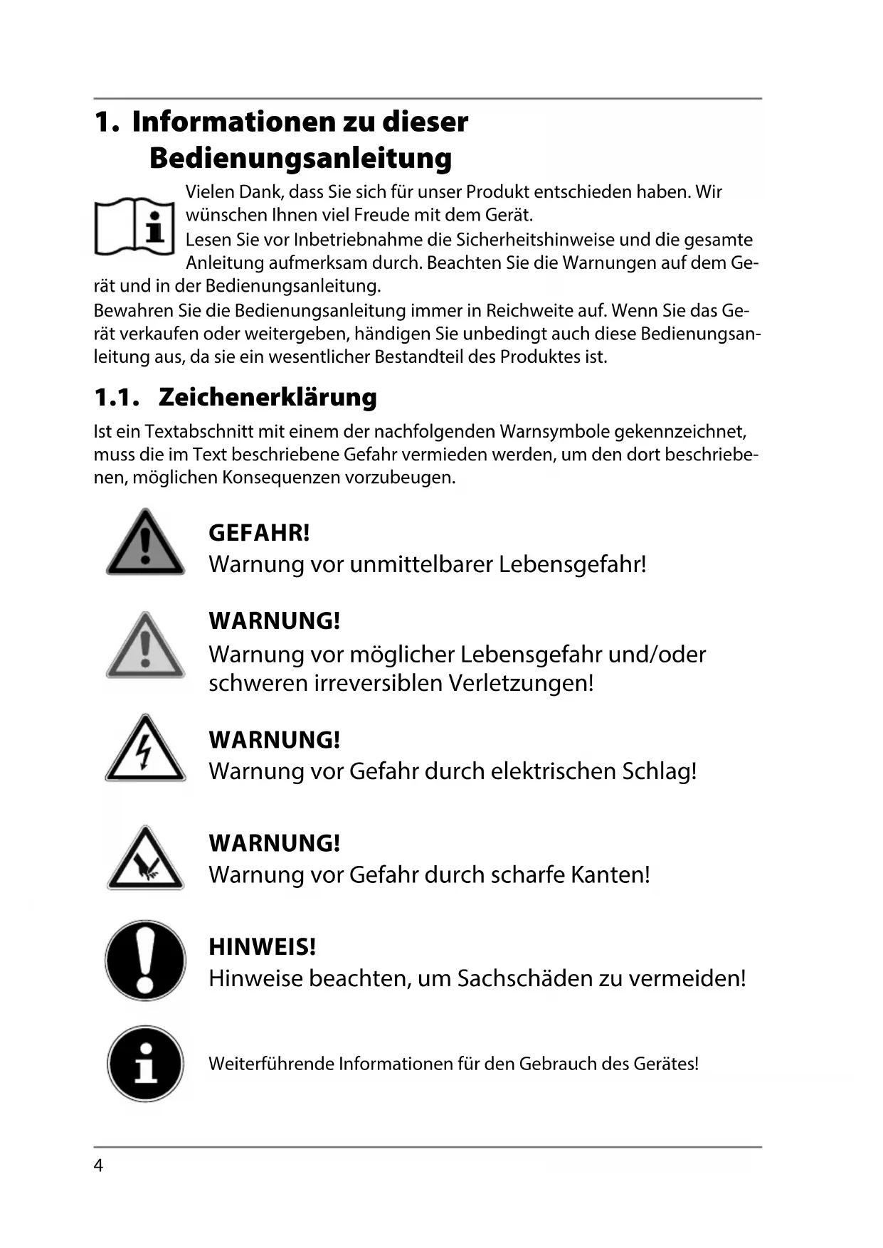 1. Informationen zu dieser Bedienungsanleitung ........................................ 4