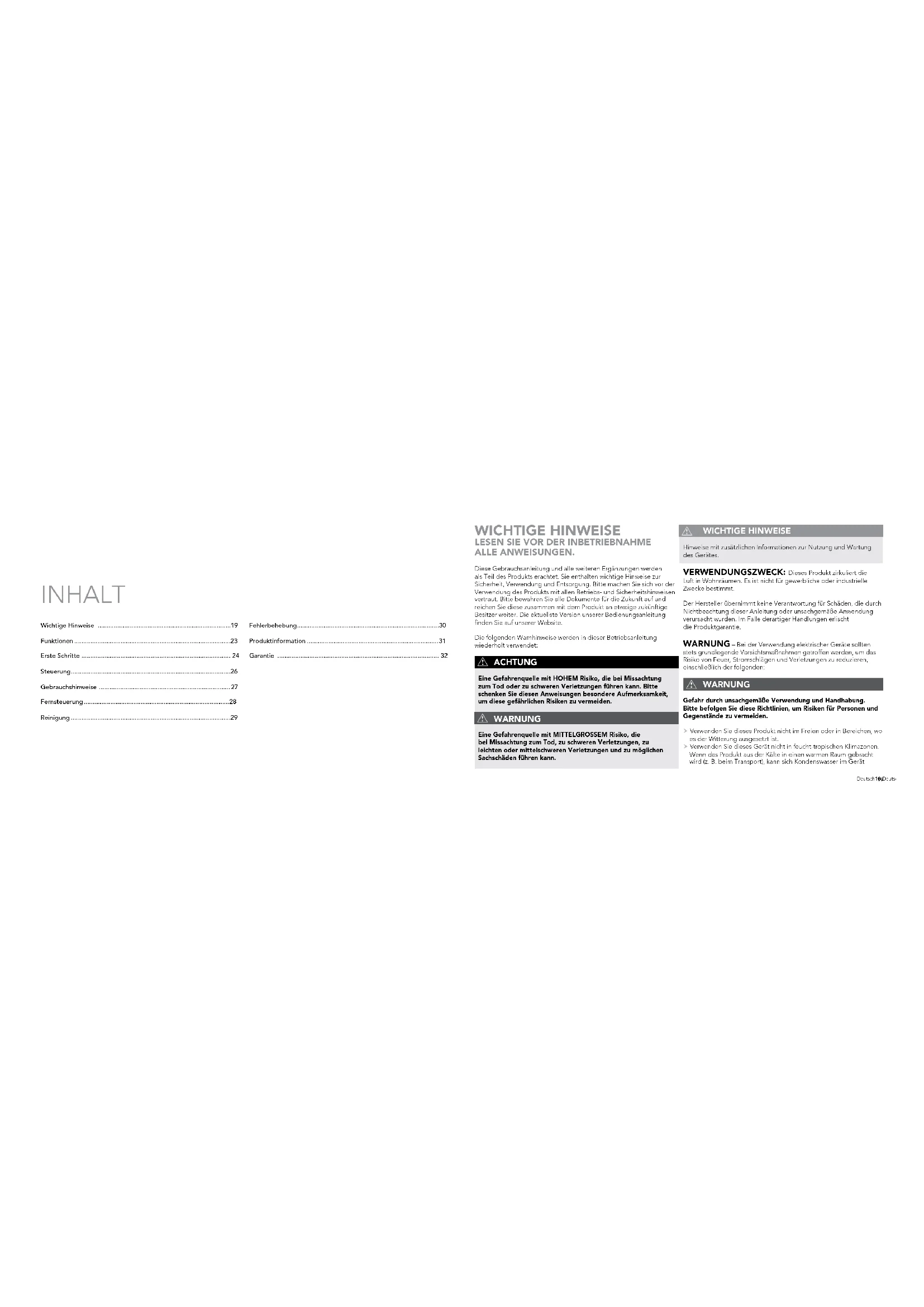 - ALLE ANWEISUNGEN. Wichtige Hinweise p. 19