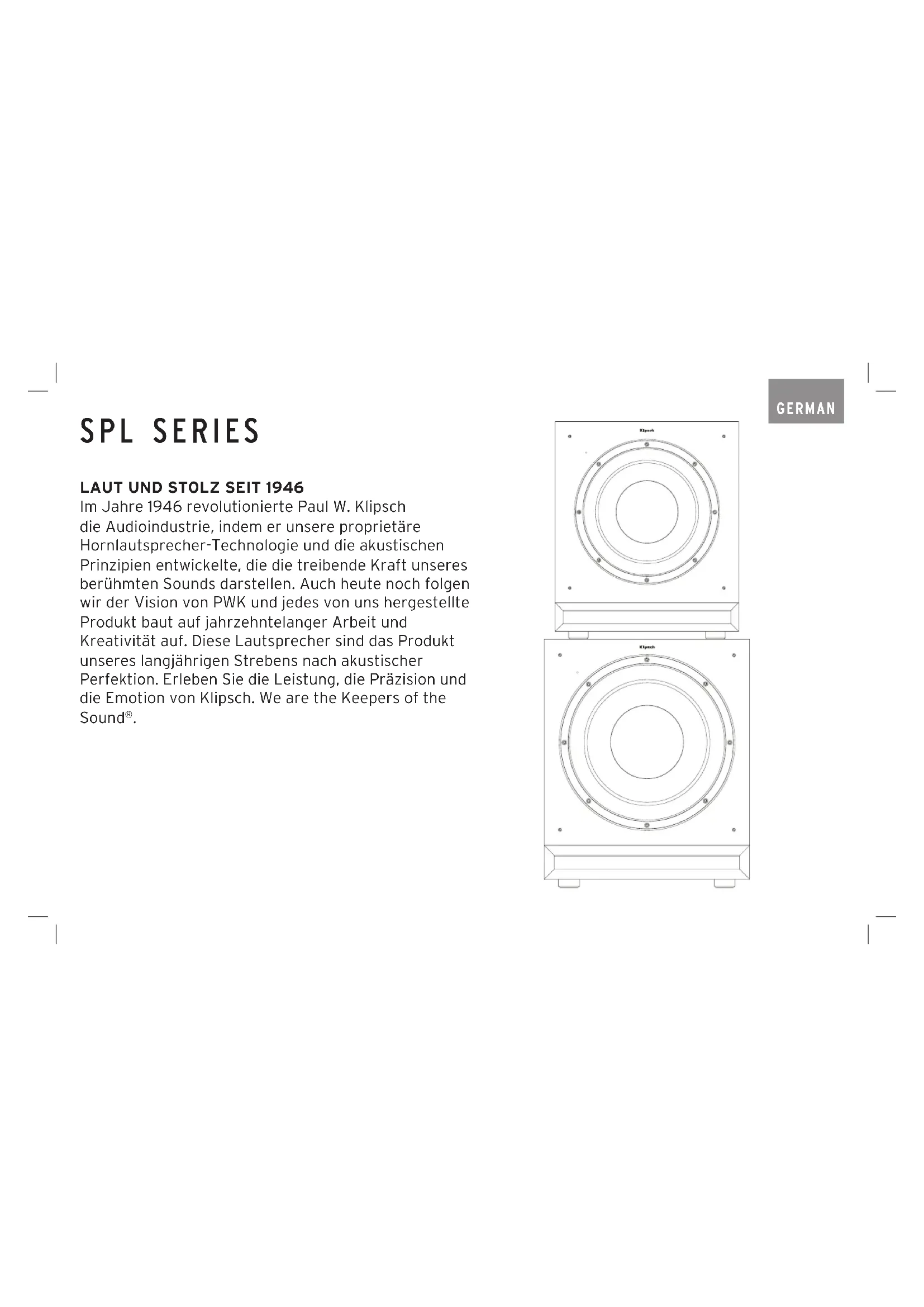 Finden Sie kostenlos die Bedienungsanleitung des Geräts SPL150 KLIPSCH als PDF.