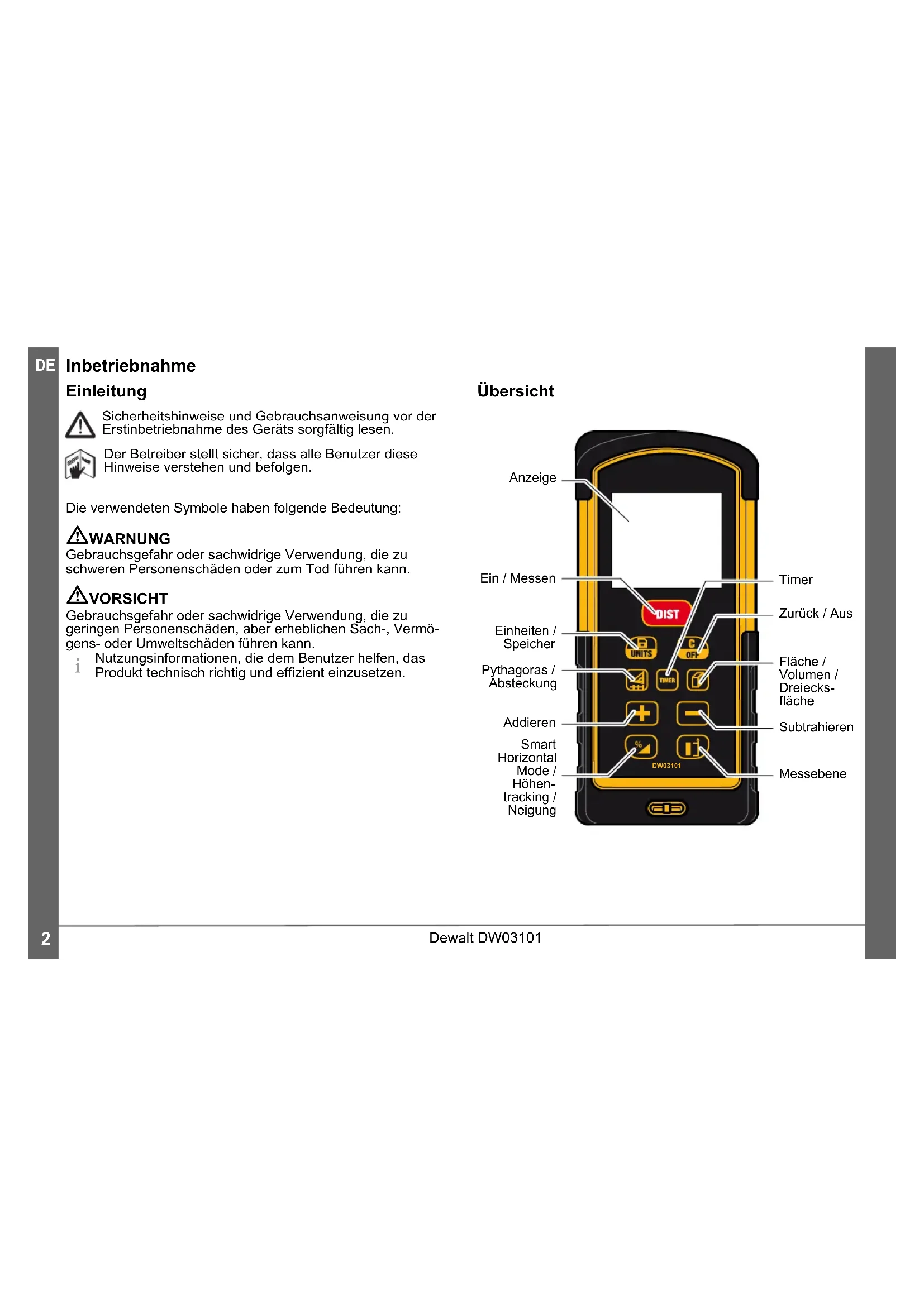 DW03101 - Entfernungsmesser DEWALT - Kostenlose Bedienungsanleitung