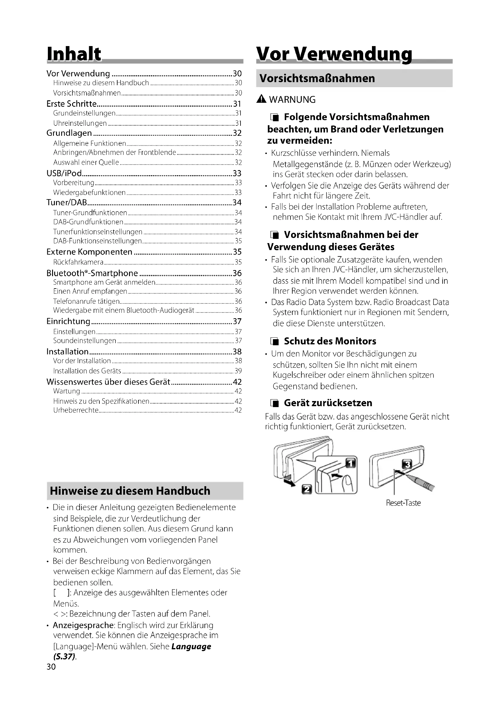 Reset-Taste Inhalt Hinweise zu diesem Handbuch