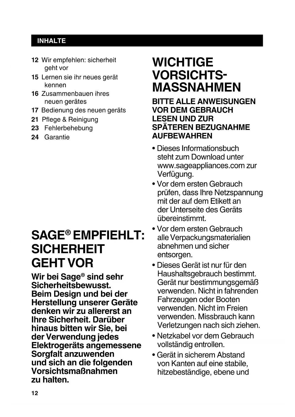 - Dieses Informationsbuch steht zum Download unter www.sageappliances.com zur Verfügung.