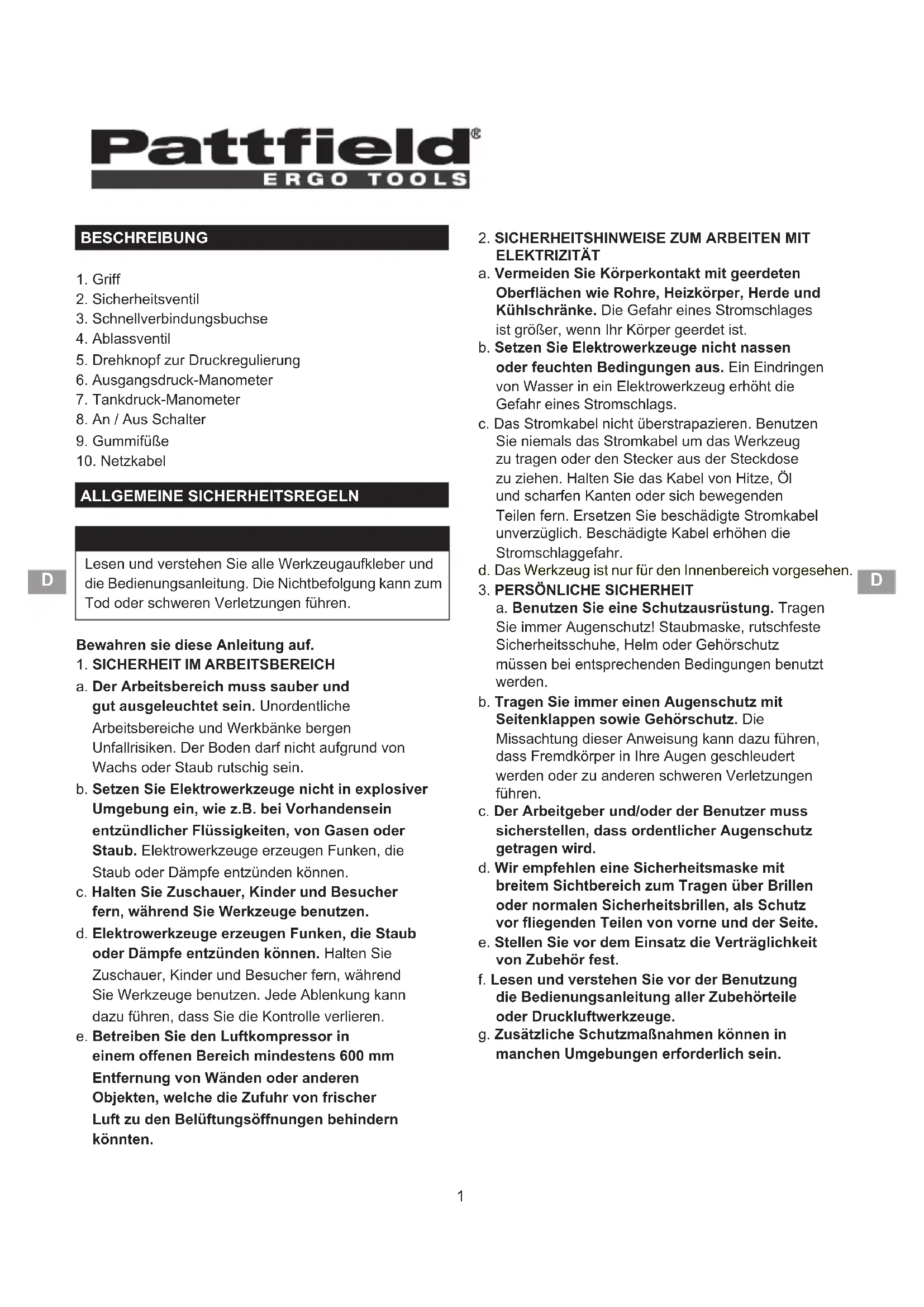 PE300K - Luftkompressor Pattfield - Kostenlose Bedienungsanleitung