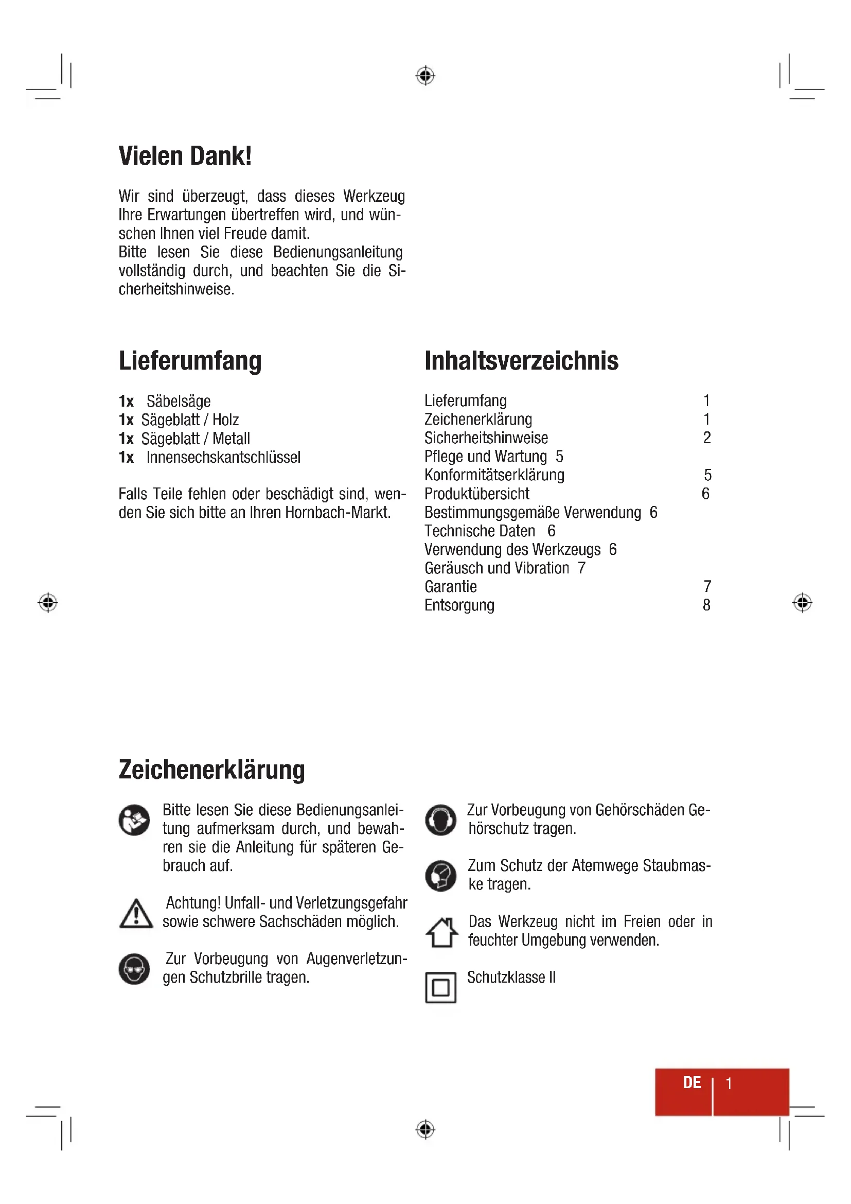 Das Werkzeug ist zum Sagen von Holz, Kunststoff und Metall vorgesehen. Das Werkzeug ist nicht für den gewerblichen Gebrauch bestimmt.