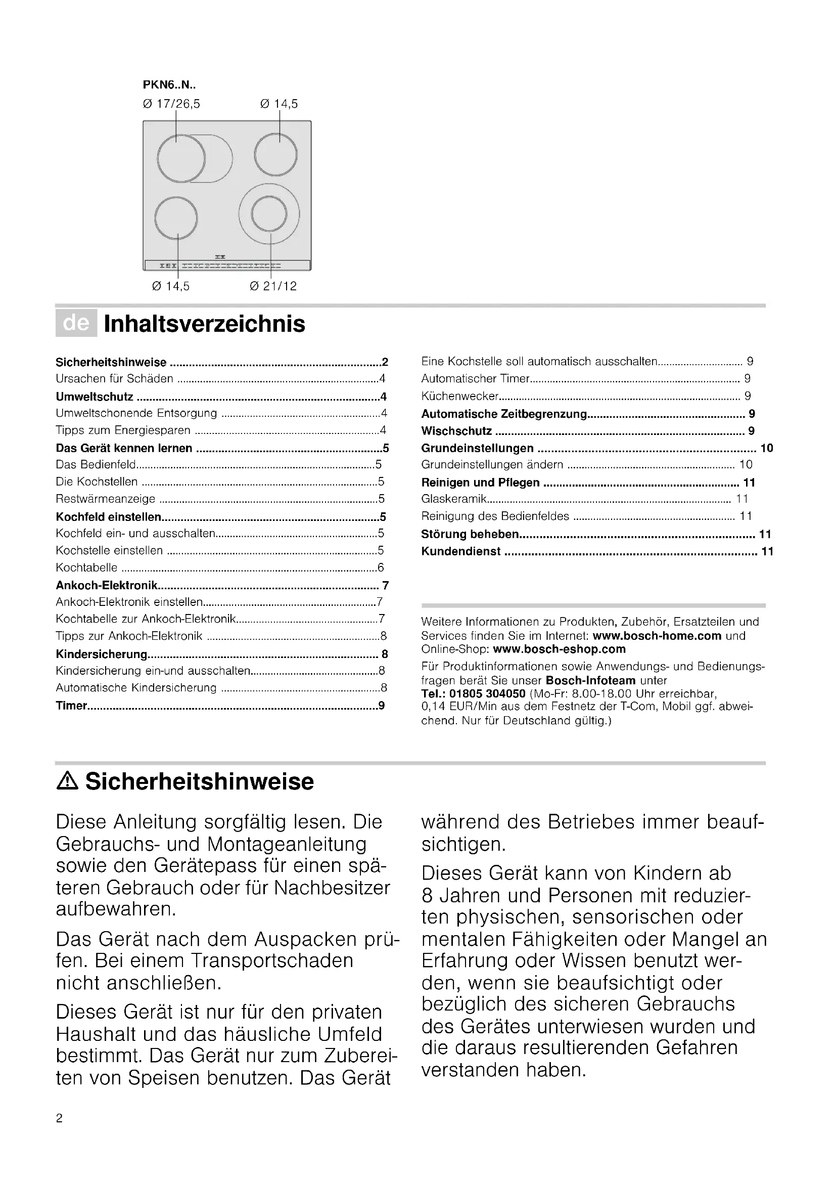 Die Gebrauchsanweisung gilt fur verschiedene Kochfelder. Auf Seite 2 finden Sie eine Typenübersicht mit Maßangaben.