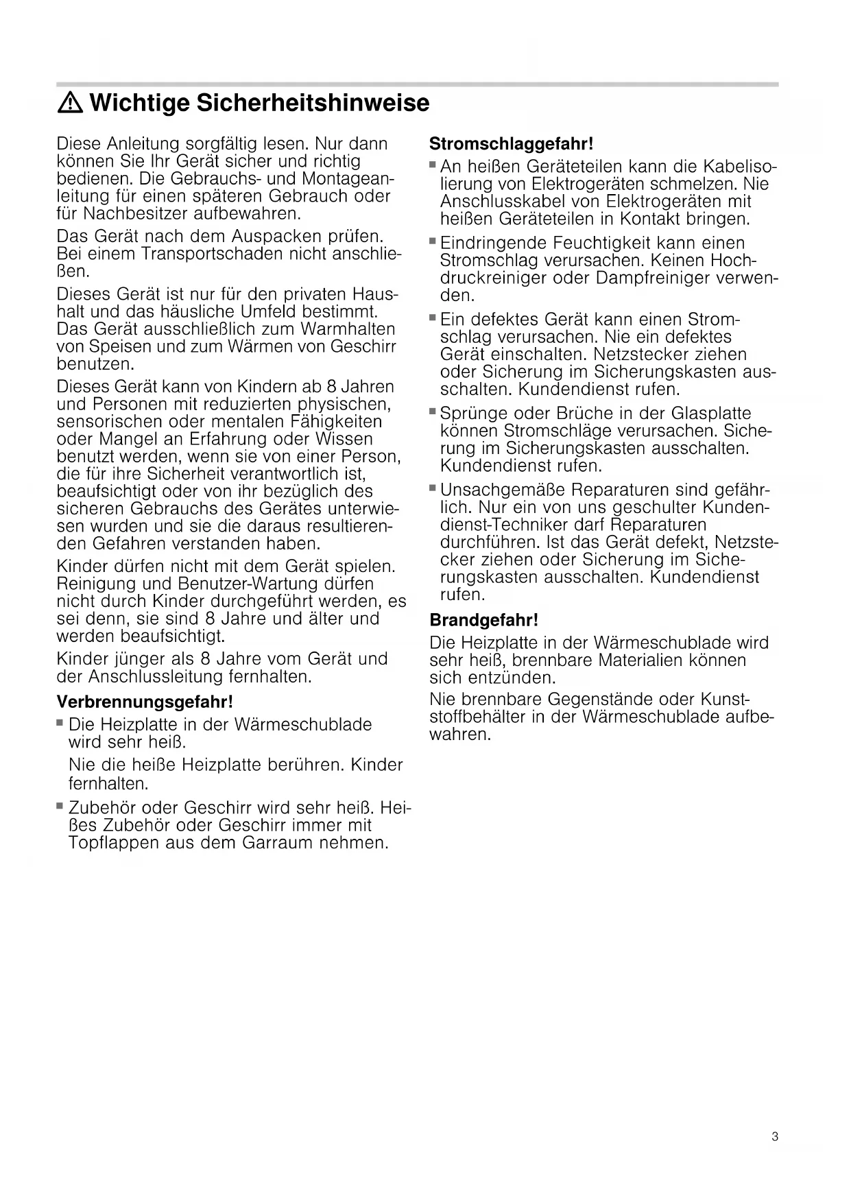 - Wärmeschublade Warming drawer Cajón calientaplatos Tiroir chauffant Cassetto termico Warmtelade2 Ø Inhaltsverzeichnis [de]Gebrauchsanleitung Wichtige Sicherheitshinweise p. 3