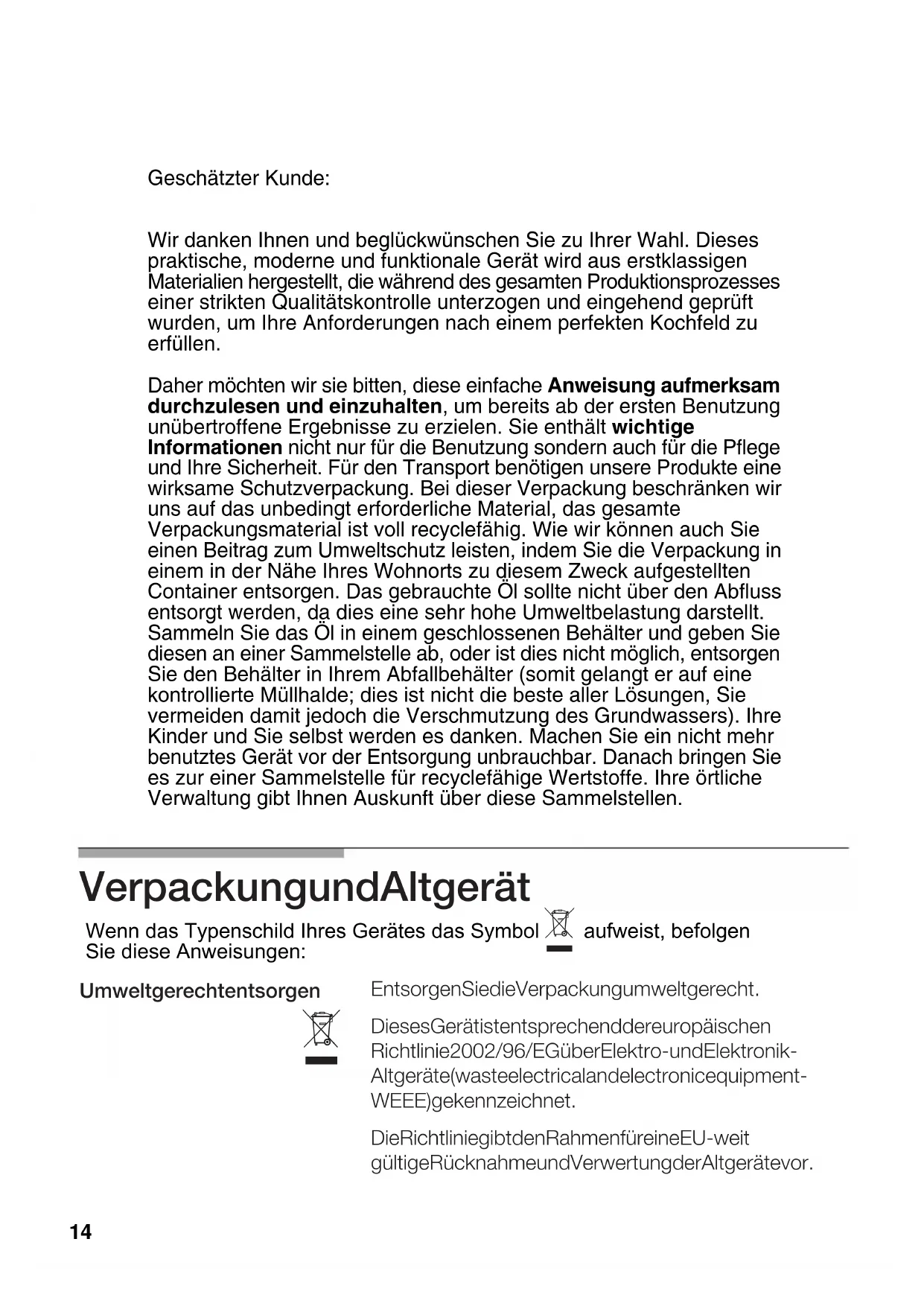 aufweist, befolgen Sie diese Anweisungen: erfüllen. 14INHALT Sicherheitshinweise Dies sind die Bestandteile Ihres Kochfelds Gasbrenner Empfohlene Durchmesser (cm) der Kochgeräte Zusatzroste Elektrische Kochplatten Elektrische Kochplatten mit Regler für 10 Positionen Warnhinweise bei der Benutzung Kochen Betriebsstörunggen Garantiebedingungen