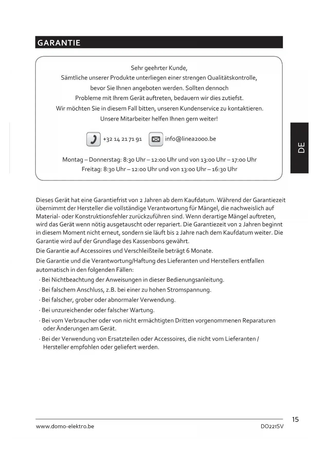BEDIENUNGSANLEITUNG DO221SV DOMO