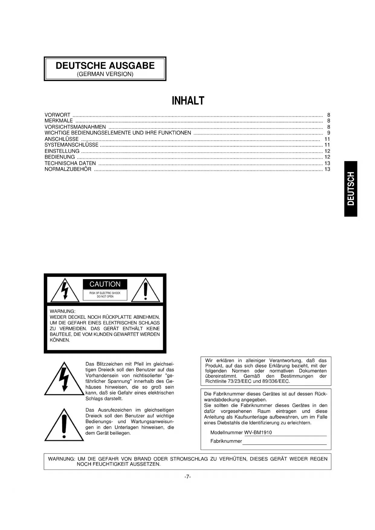 BEDIENUNGSANLEITUNG WVBM1910 PANASONIC