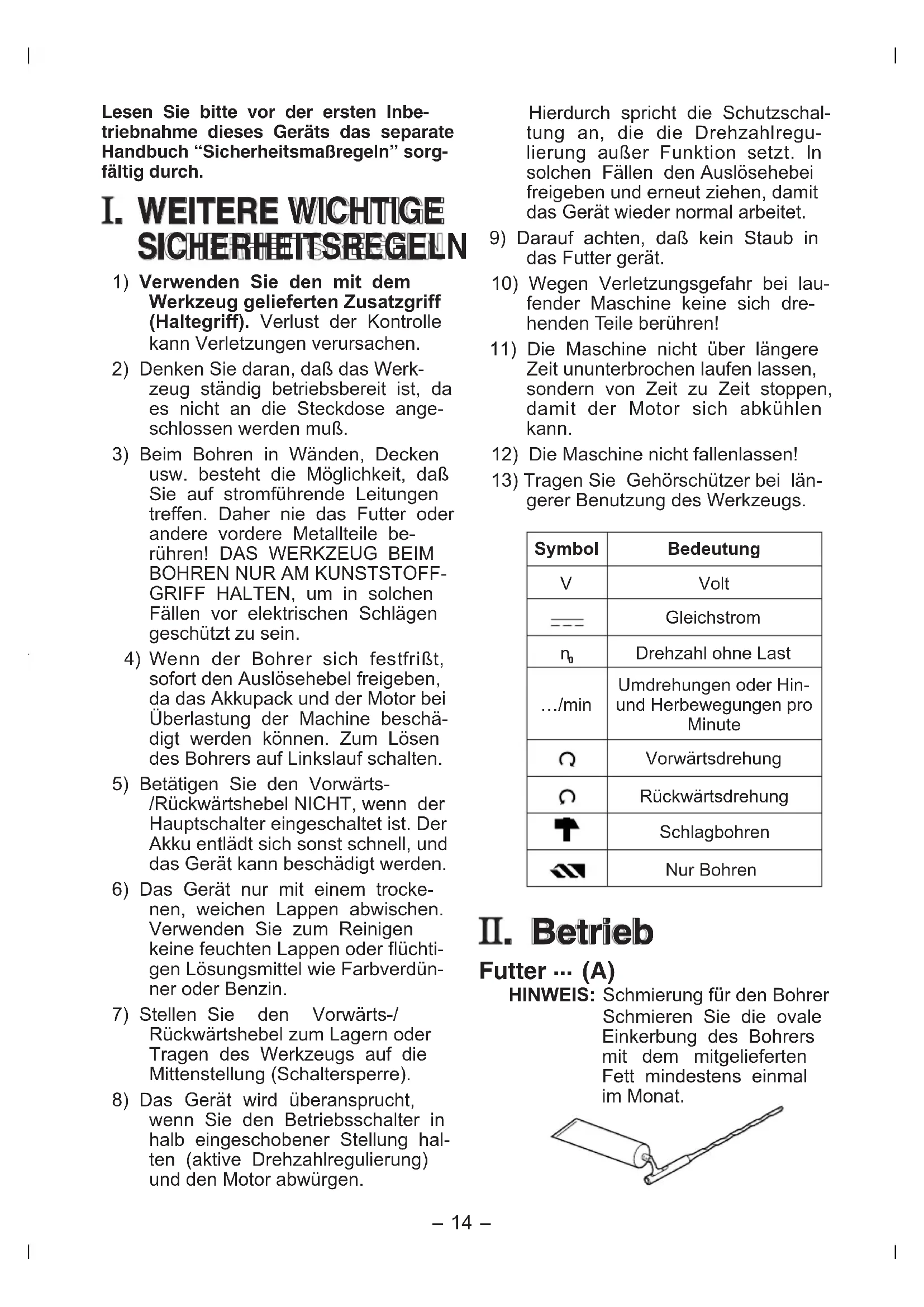 13) Tragen Sie Gehorschützer bei langerer Benutzung des Werkzeugs.