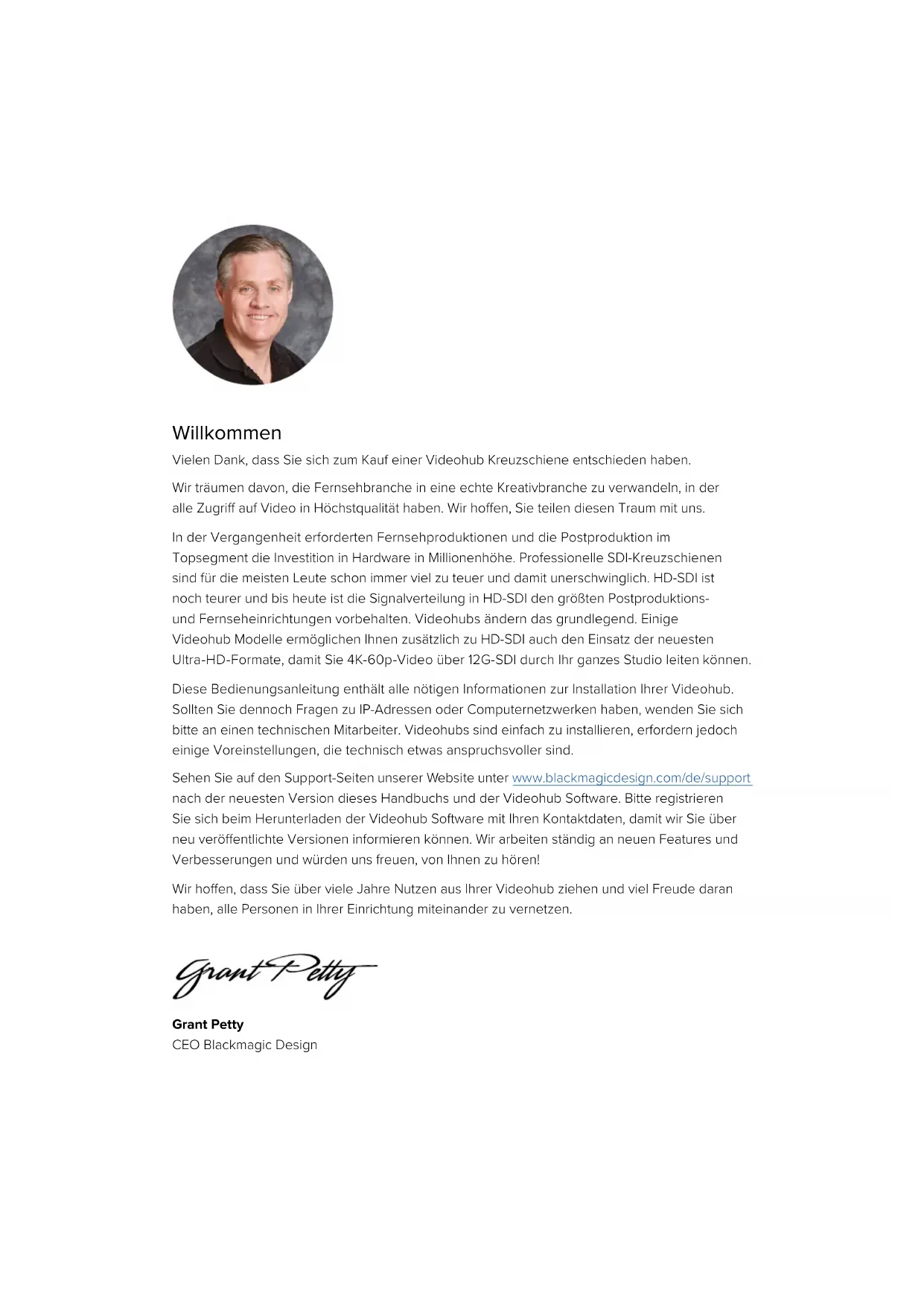 BEDIENUNGSANLEITUNG Universal Videohub 72 Blackmagic Design